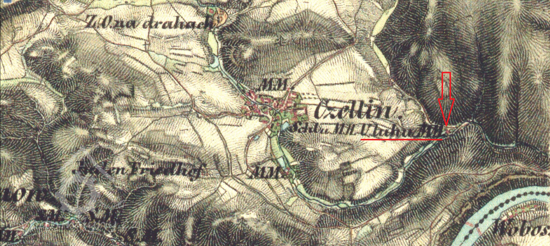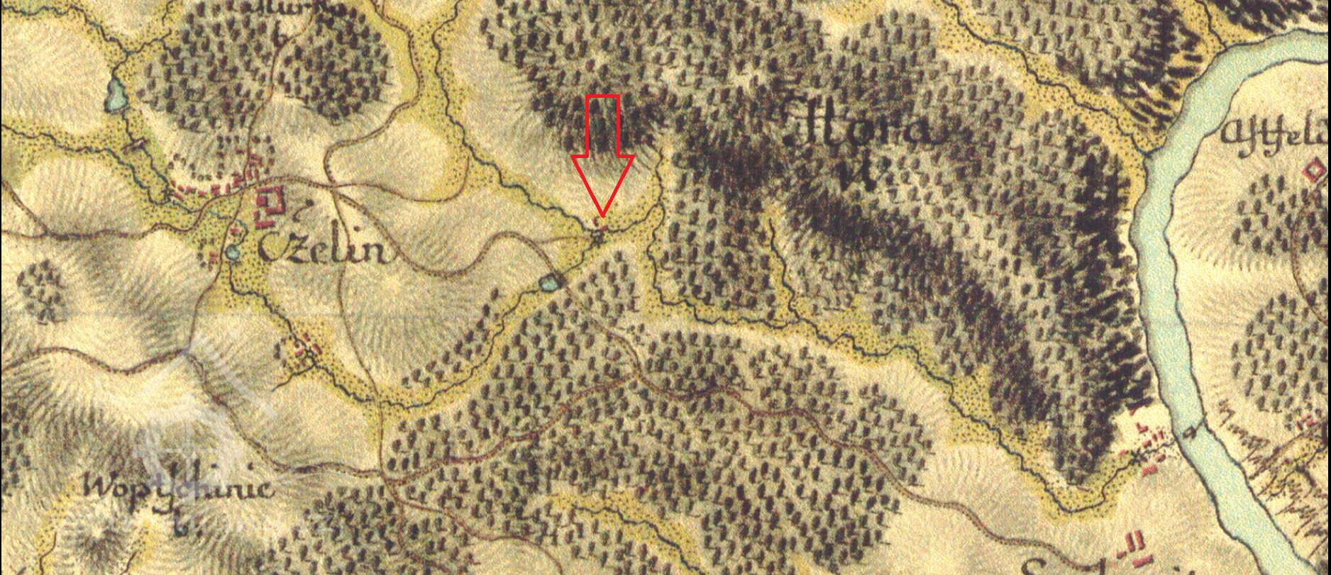 1 km východně od zámku v Čelině