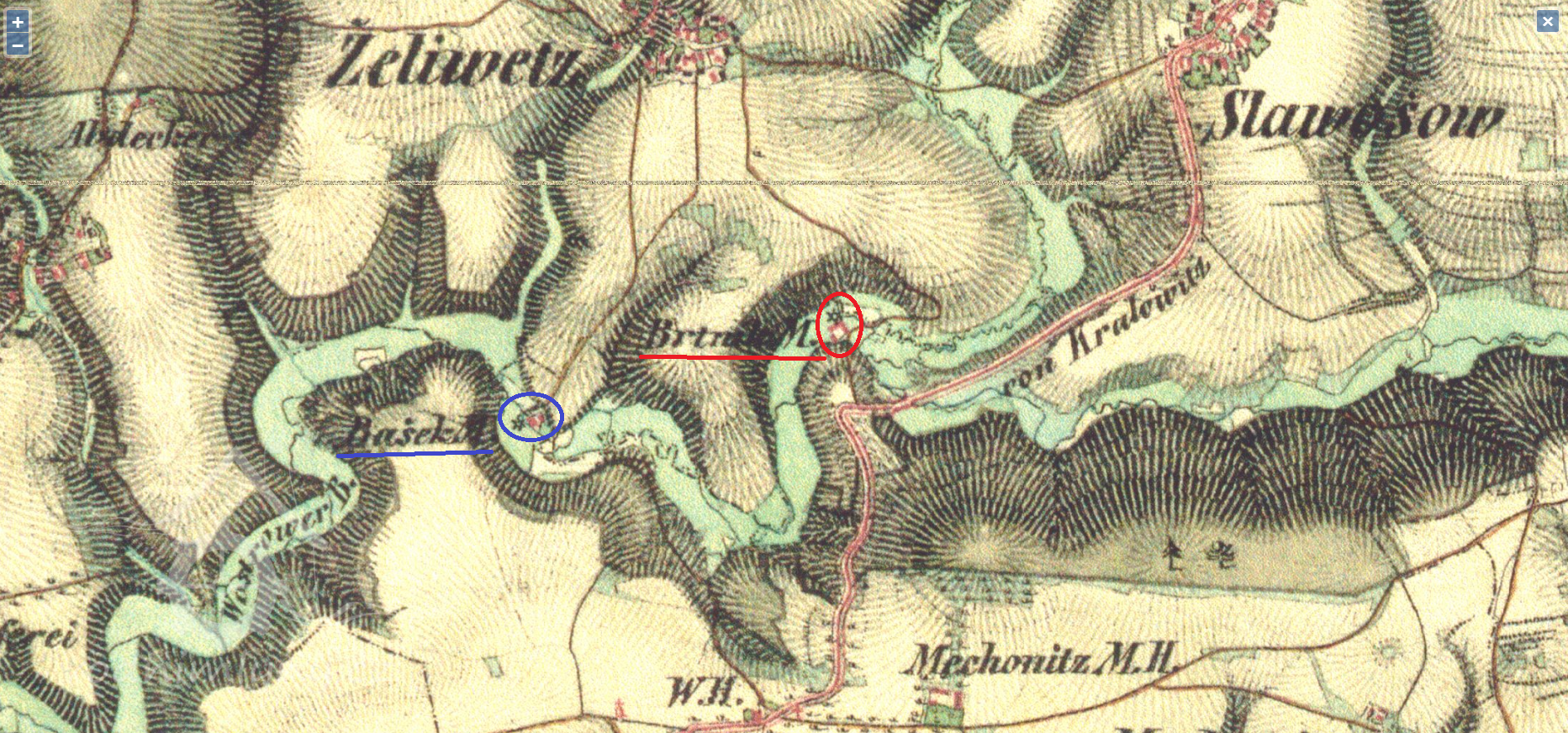 POZOR! Přímá cesta od Brtníku je možná jedině po kolejích (což však nelze v žádném případě doporučit!), jinak je nutno složitě obcházet přes Želivec nebo Dolní Pohleď.