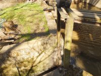 Voda do mlýnského náhonu vzdouvána jest primitivním dřevěným jezem šířky 5,10 m. Koruna jezu zřízena jest z dřevěného prahu, na nějž kladou se nástavky ve střední části jezu, která jest 2,4 m široká, 10 až 33 cm vysoké, po obou krajích, v zimním období nástavky 10 cm vysoké. Leží tudíž v době zimní přepadová hrana jezu 33 cm nad vlastní korunou jezu, kdežto v létě nasazují se nástavky pouze ve střední části na výšku 10 cm.