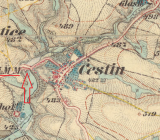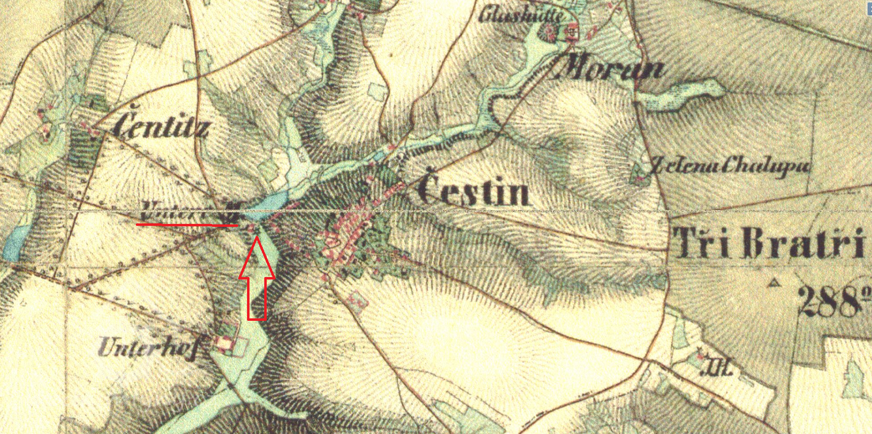 500 m západně od kostela sv. Petra a Pavla v Čestíně