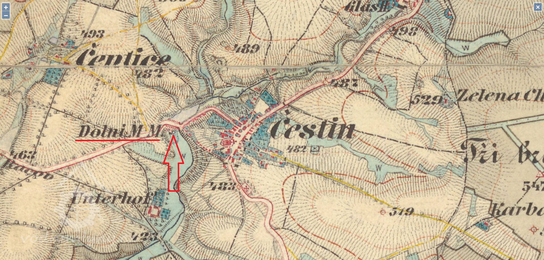 Mlýn pod Hlubokým rybníkem na západním okraji Čestína. Ačkoliv se jmenuje Dolní, objekt v protikladu zvaný Horní mlýn se v širokém okolí nevyskytuje, je proto pravděpodobné, že ve skutečnosti byl nazván podle blízkého Dolního dvora. Do opěrné zdi u silnice je zazděna sbírka mlecích kamenů (nutno sestoupit).