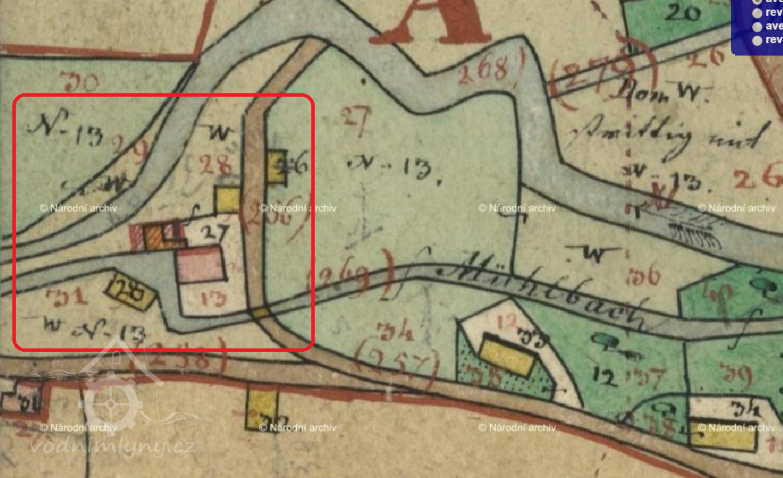 První z trojice ostrovských mlýnů, v roce 1930 již nebyl v provozu, na rozdíl od Dolního však dosud stojí.