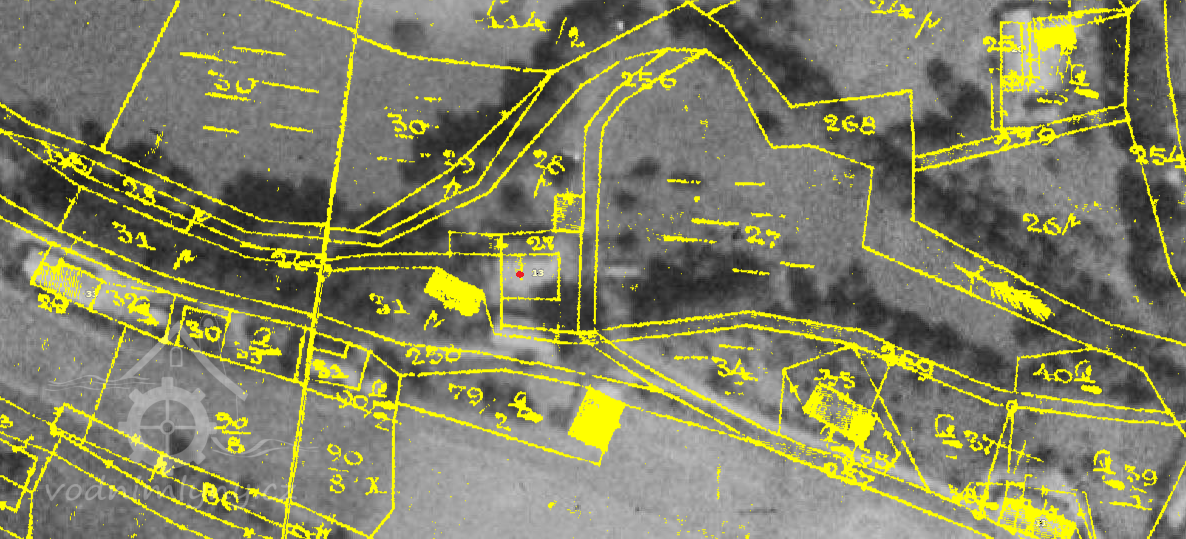 1949: Místo původních 4 vodních kol, kdy byly provozovány: 2 složení, 3 stoupy a pila, jest dnes v činnosti pouze jedno vodní kolo na vrchní vodu průměru 4,00 m, šířka mezi věnci 0,90 cm a hloubka korečků 0,24 cm.