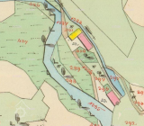 Pod čp. 5 trojpatrová obytná mlýnice a další přízemní budovy kolem otevřeného dvora, pod čp. 1 hospodářské příslušenství (stáje) a kolmo navazující stodola
