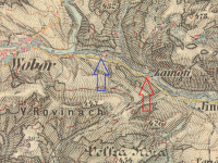 100 m západně od kapličky v Oborách