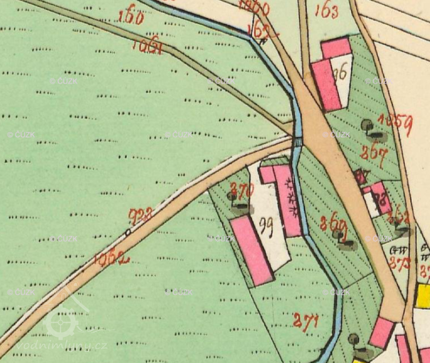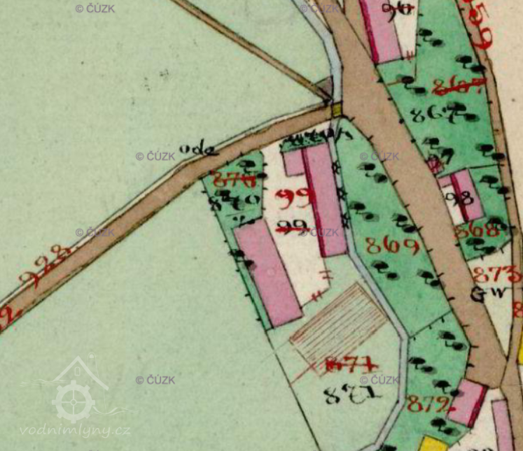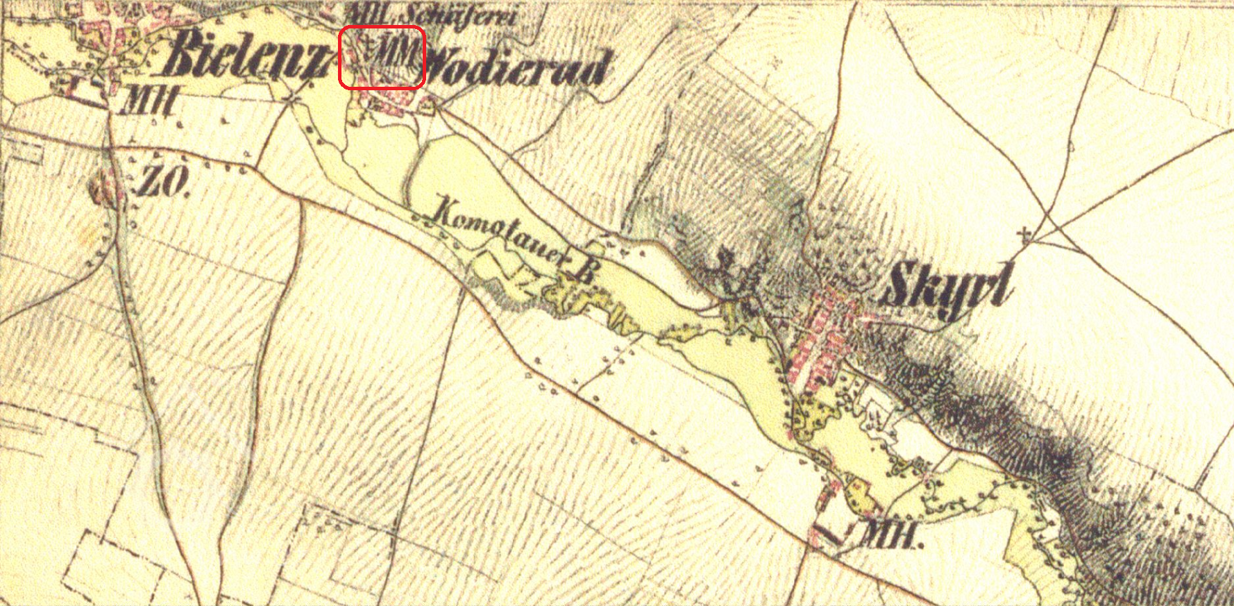 Zaniklý menší mlýn na společném náhonu s Bíleneckým mlýnem, v roce 1930 již nebyl v provozu, dodnes dochovány jen zbytky zdí. Mlýniště se nachází v soukromé zahradě a není přístupné.