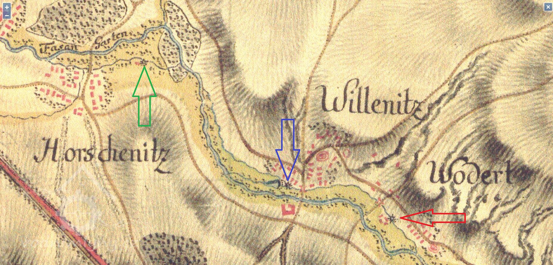 Společný náhon s Bíleneckým mlýnem, na kolo voda přiváděna rourou, odtok od kola rovněž rourou, poté otevřeným kanálem přes louky zpět do Chomutovky.