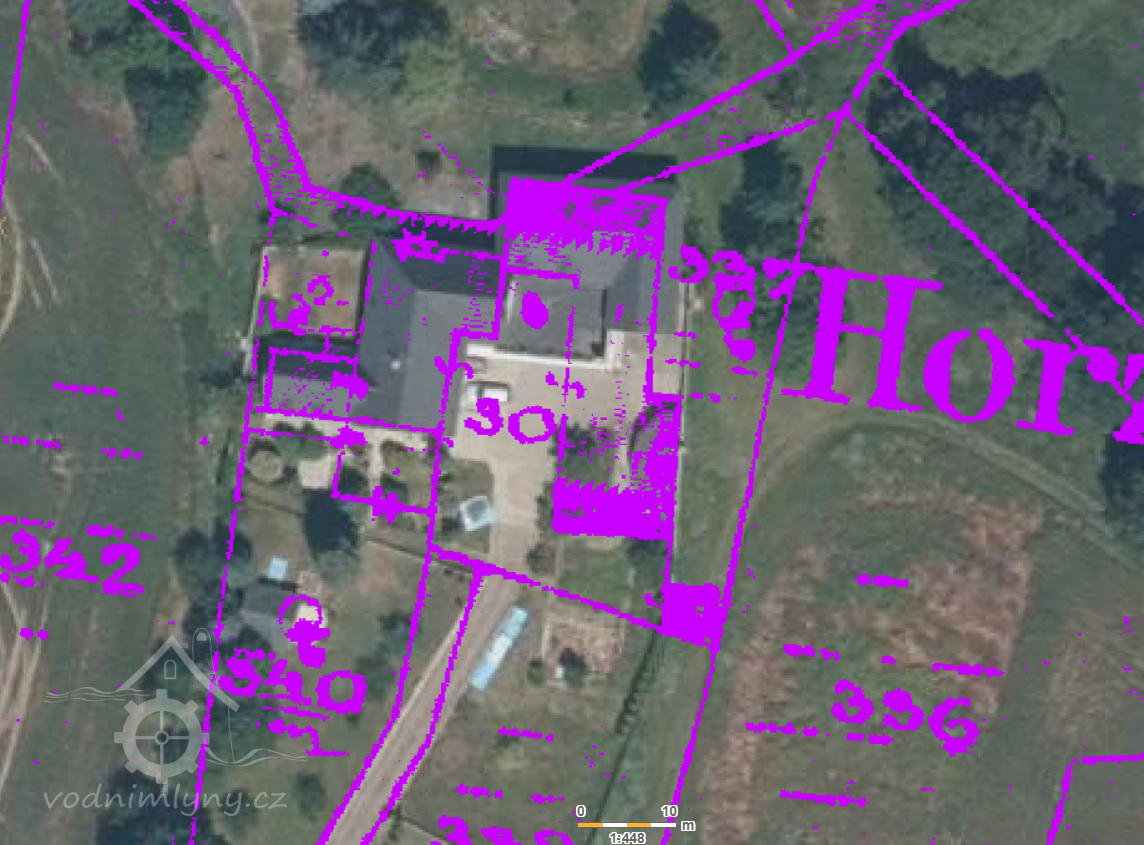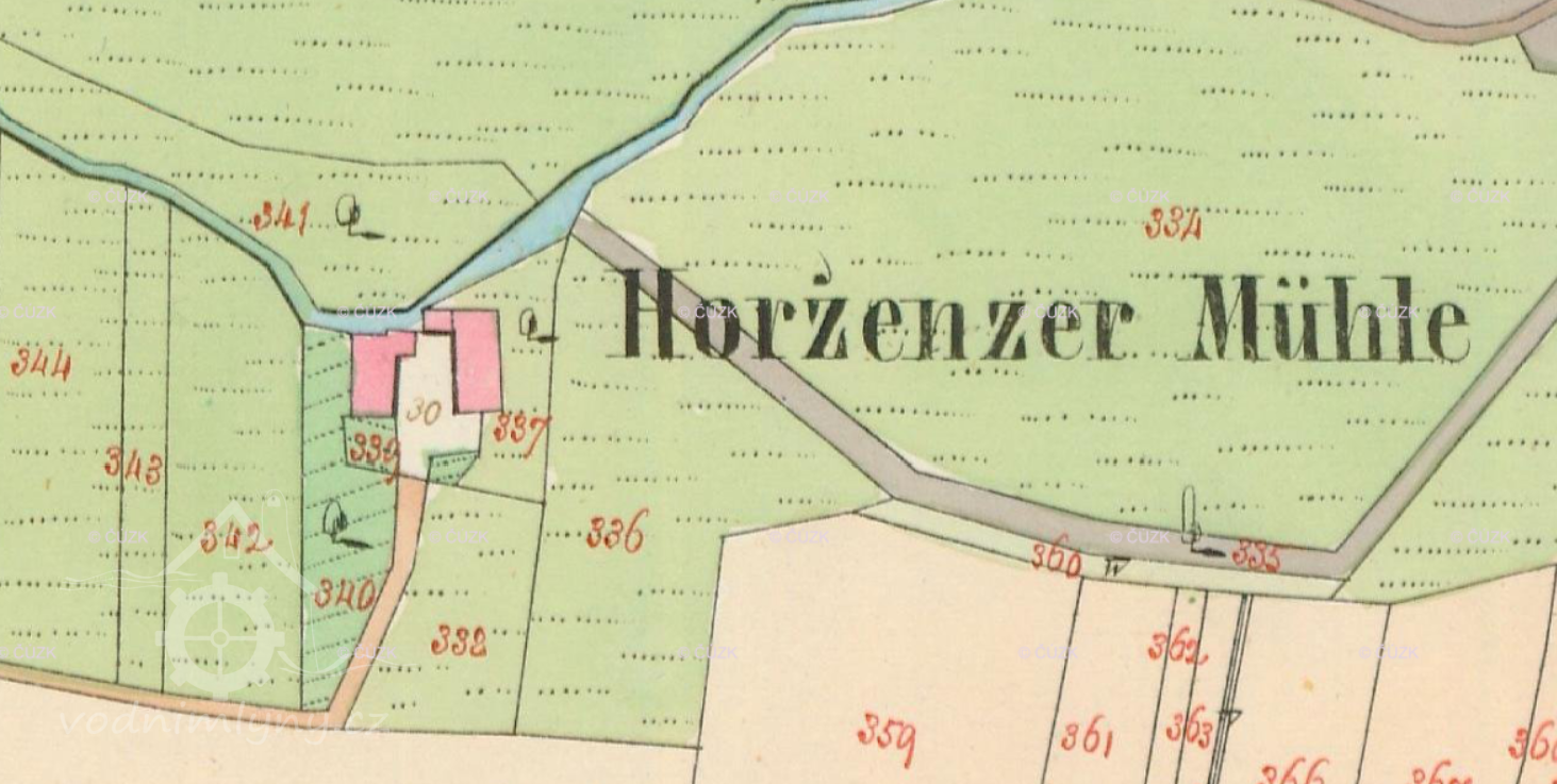 Větší mlýn na samotě pod Hořencem, v posledních letech totálně přestavěn a rozšířen na luxusní residenci.