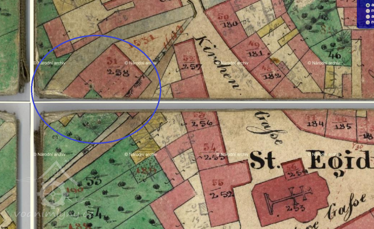 Původně středověký mlýn na západním okraji historického jádra Jirkova, 1902 vykoupený firmou Feig & Siebenäuger, rozšířený a přestavěný na mechanickou výrobu prýmků a krajek na vodní pohon. V 80. letech 20. stol. zbořený.