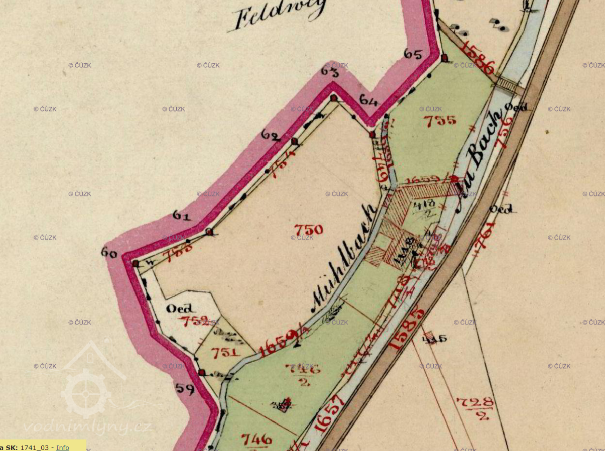 Popis1930: 1 kolo na svrchní vodu, hltnost 0,11 m3/s, spád 5,2 m, výkon 5 HP