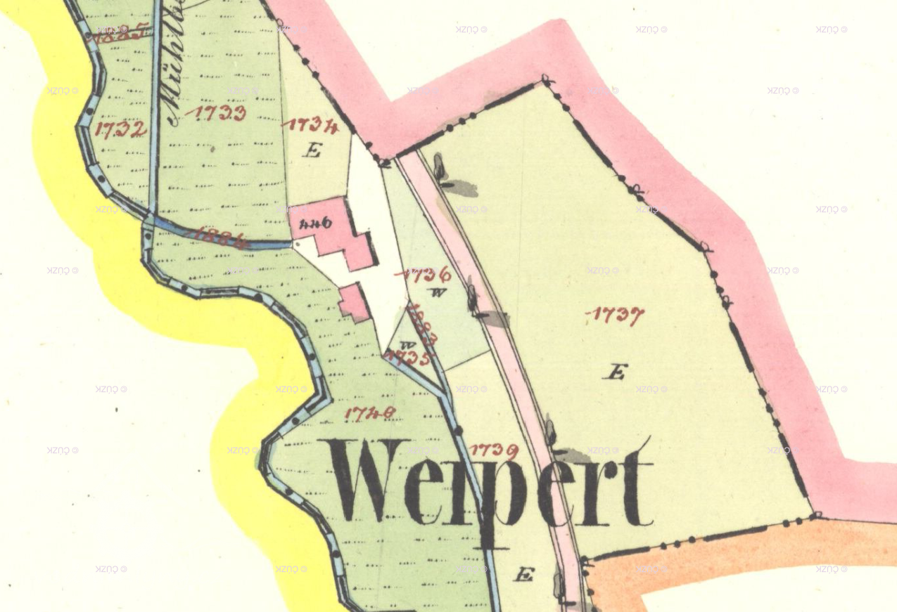 1842 mlýn, spolumajitelé Josef Lenhard a Antonín Preis z Přísečnice, každý rovným dílem