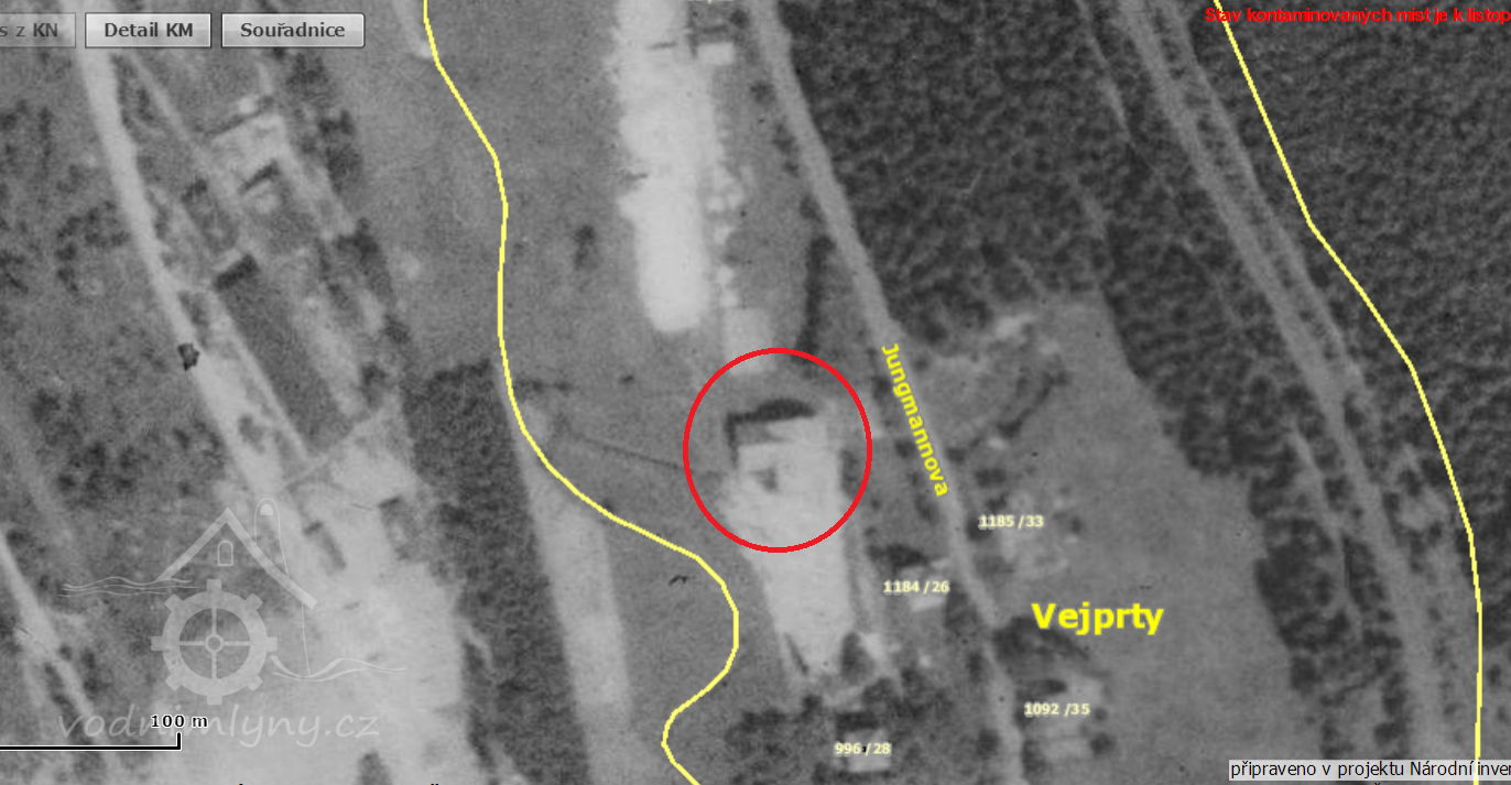 Zaniklý mlýn, na mapě I. vojenského mapování zakreslen jako papírna, na II. voj. mapování jako obilní mlýn. 1930 již nebyl v provozu, 1953 ještě stál.