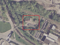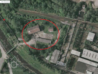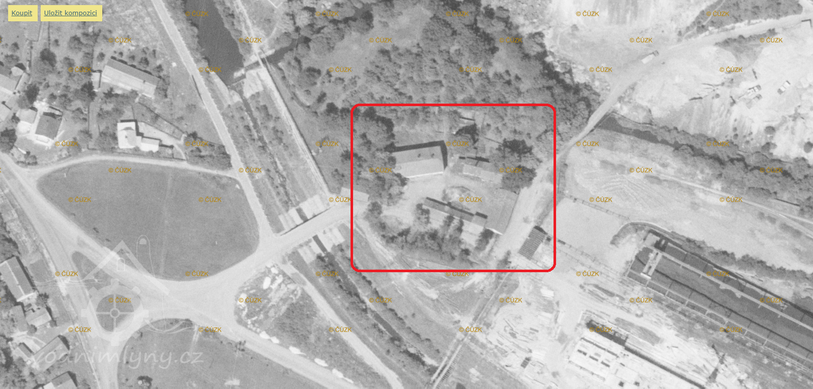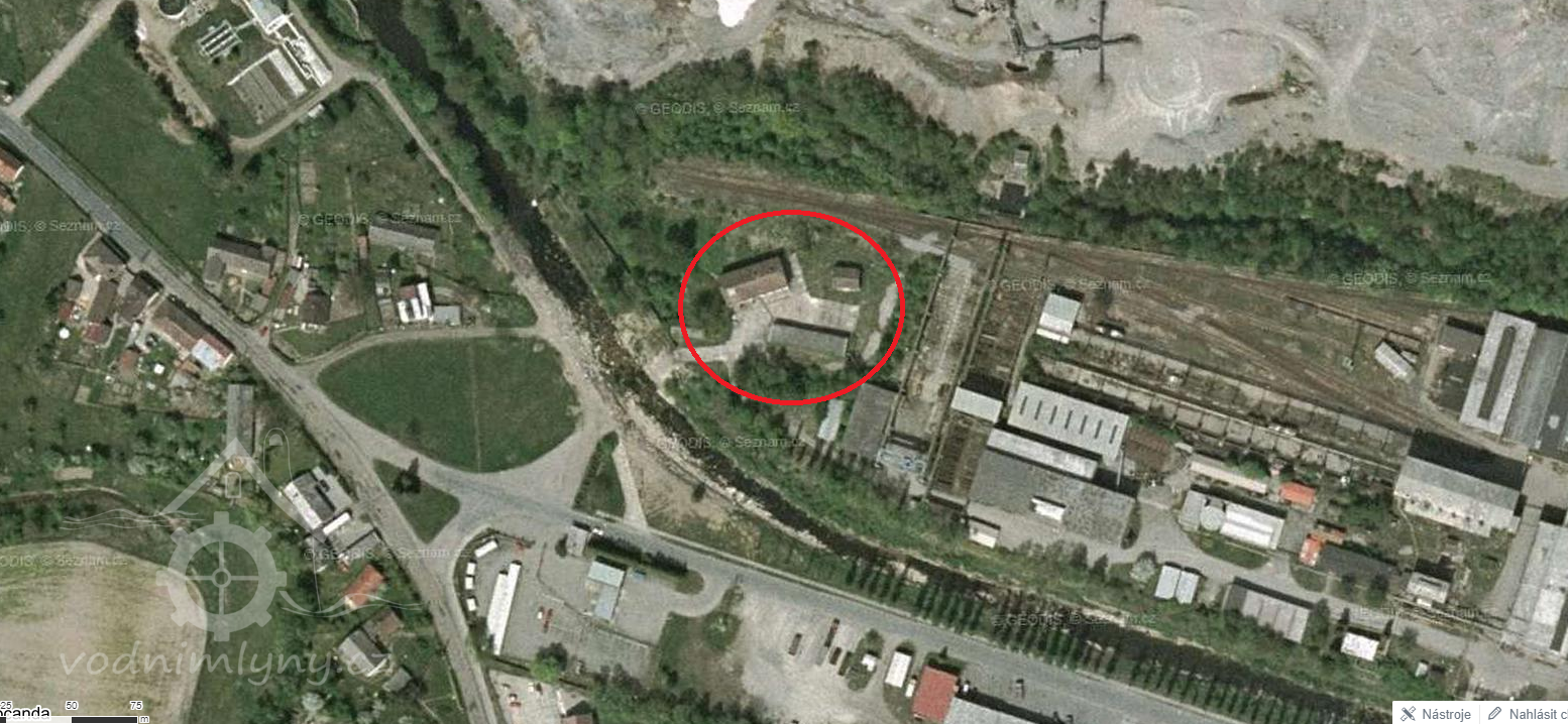 k mlýnu dovedena těžká jeřábová dráha a z druhé strany výsypka strusky