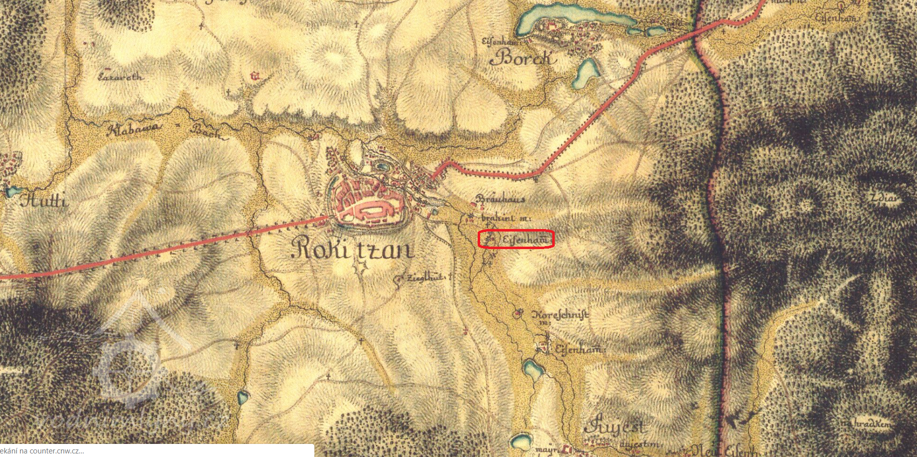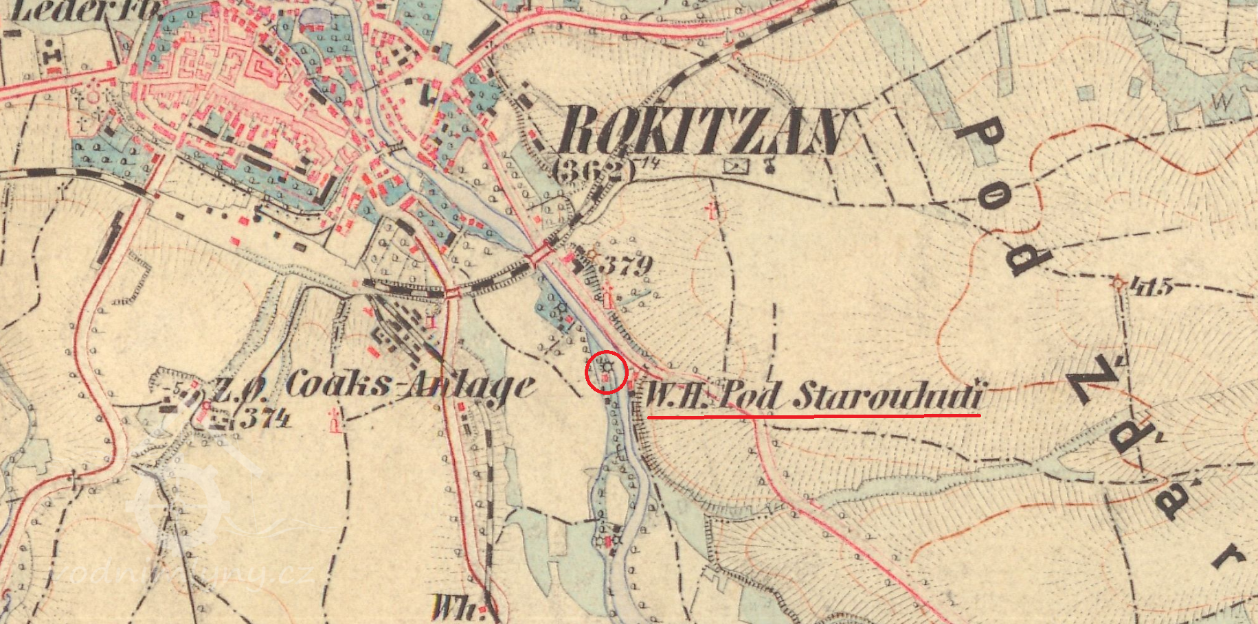 Mlýn v sousedství Staré Huti v Rokycanech, připomínaný ke konci 16. stol.