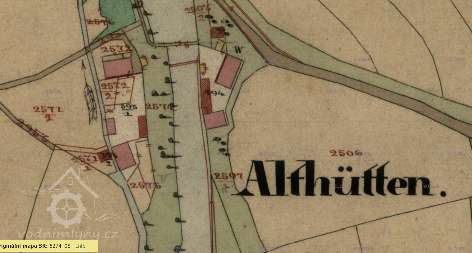 Při huti stál mlýn zvaný Starohuťský. Roku 1577 připadla huť M.Lindnerovi, který se oženil s A.Železnou, dcerou majitele známého zájezdního hostince Na Železné (čp.69/II) na Pražském předměstí. Po Lindnerově smrti se jeho žena provdala za P.Tendlera a ten po smrti manželky prodal mlýn a huť roku 1596 obci.