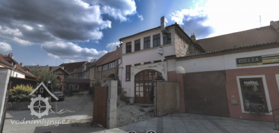 Za domem se rozkládá dvůr s pásem bývalých hospodářských staveb z 19.století umístěných u bývalého Mlýnského náhonu v trase městských hradeb. Jde o přízemní ale poměrně vysoké a robustní stavby s částečně klenutými vnitřními prostorami, malými okny a sedlovou střechou. Roku 1920 vypracoval Josef Beneš projekt jejich přestavby na dílny. J.Kovář si povšiml, že tyto stavby v rozsáhlými klenutými sály mají mimořádný potenciál a navrhoval jejich využití pro kulturní účely. V letech 1992-97 byla východní část těchto hospodářských budov adaptována podle projektu ing.Jaroslava Vytiska z firmy APIT na vinárnu, později restauraci. V západní stodole, přiléhající přímo k plácku Ve Spilce zřízena koncem 90.let 20.století cukrárna.  Díky těmto adaptačním počinům byly tyto stavby zachráněny a nalezly svoji novou funkci v městském organismu.