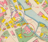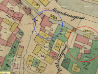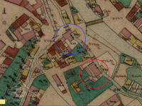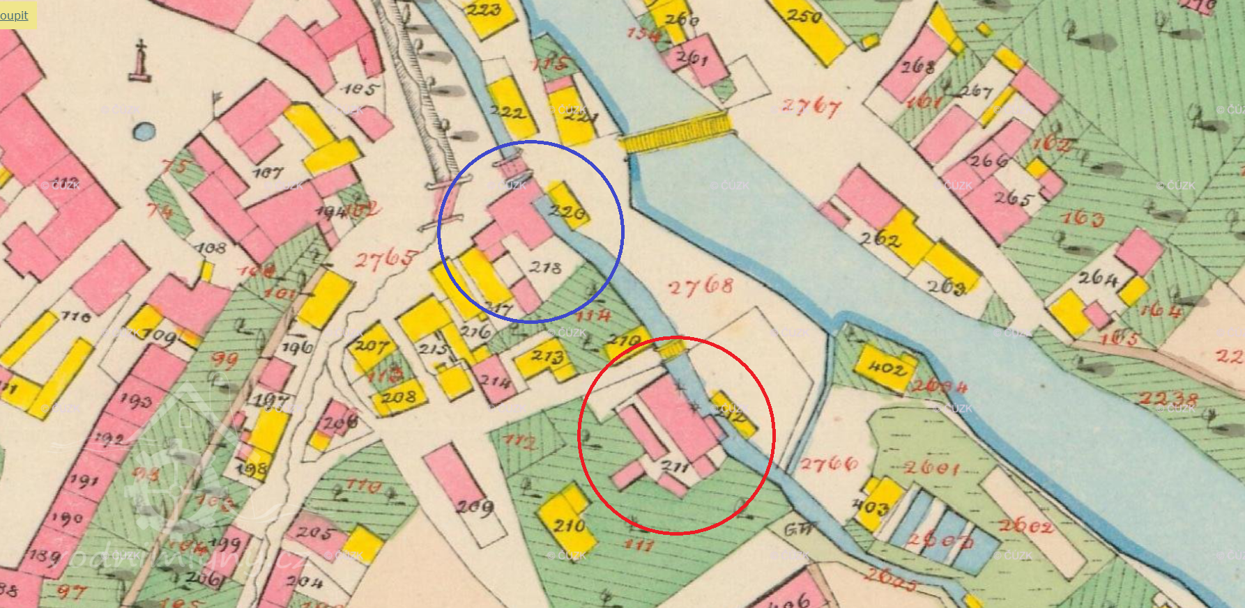 Na katastrální mapě z roku 1838 zobrazen jako nespalný, rozložitý objekt s mnoha křídly a bočními trakty, zčásti postavený přímo nad Mlýnským náhonem.