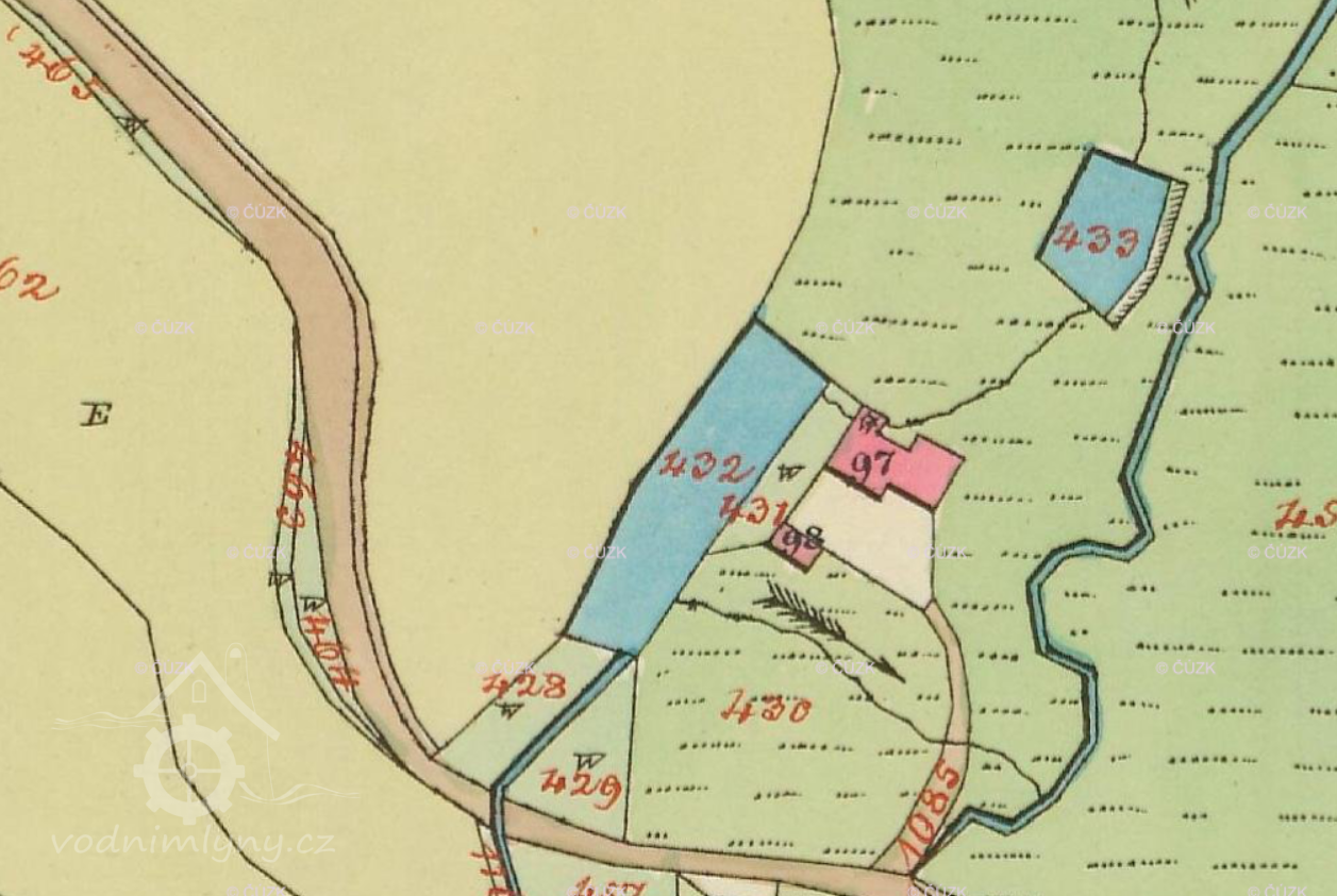 Větší mlýn na samotě, po II. světové válce opuštěný a ponechaný svému osudu. Zříceniny jsou dnes oblíbeným turistickým cílem (ač sem nevede žádná značená cesta) a pořádají se zde landartová symposia.