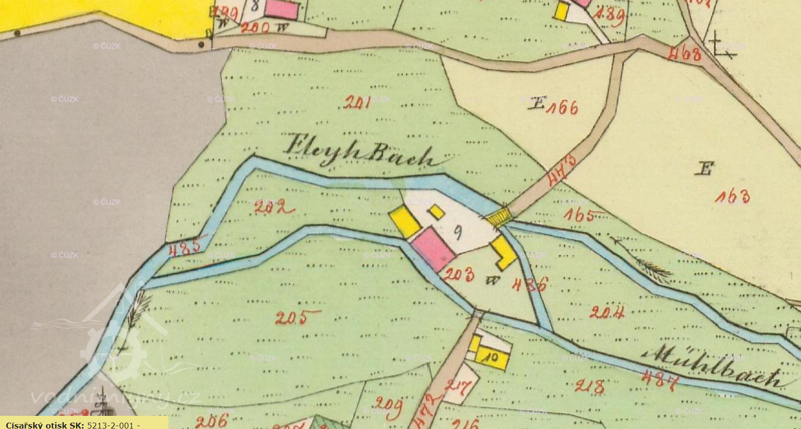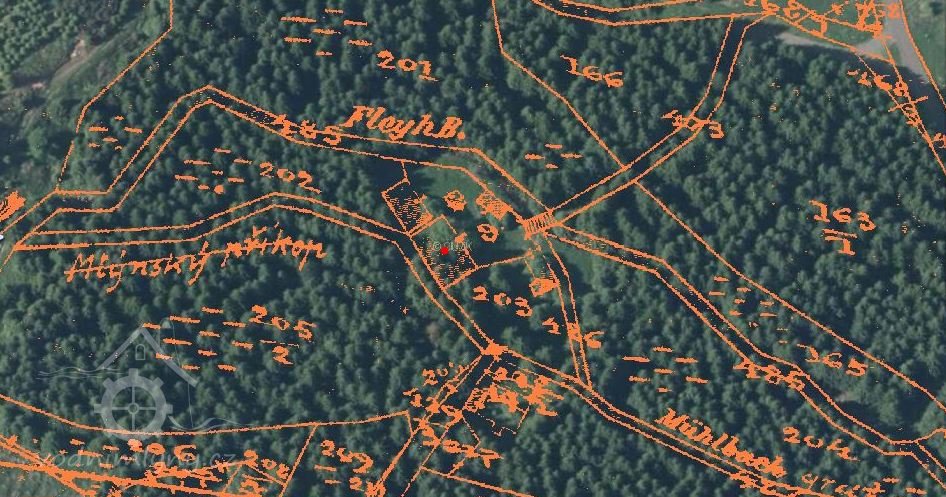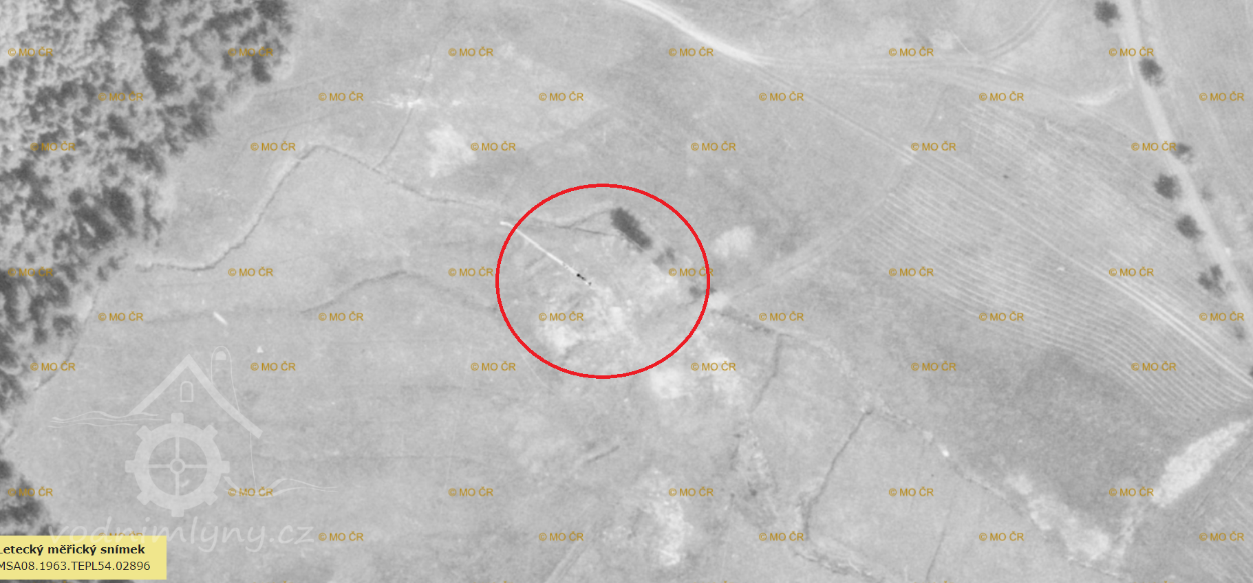 Zaniklý mlýn na západním okraji zaniklé obce Vilejšova (Nové Vsi).