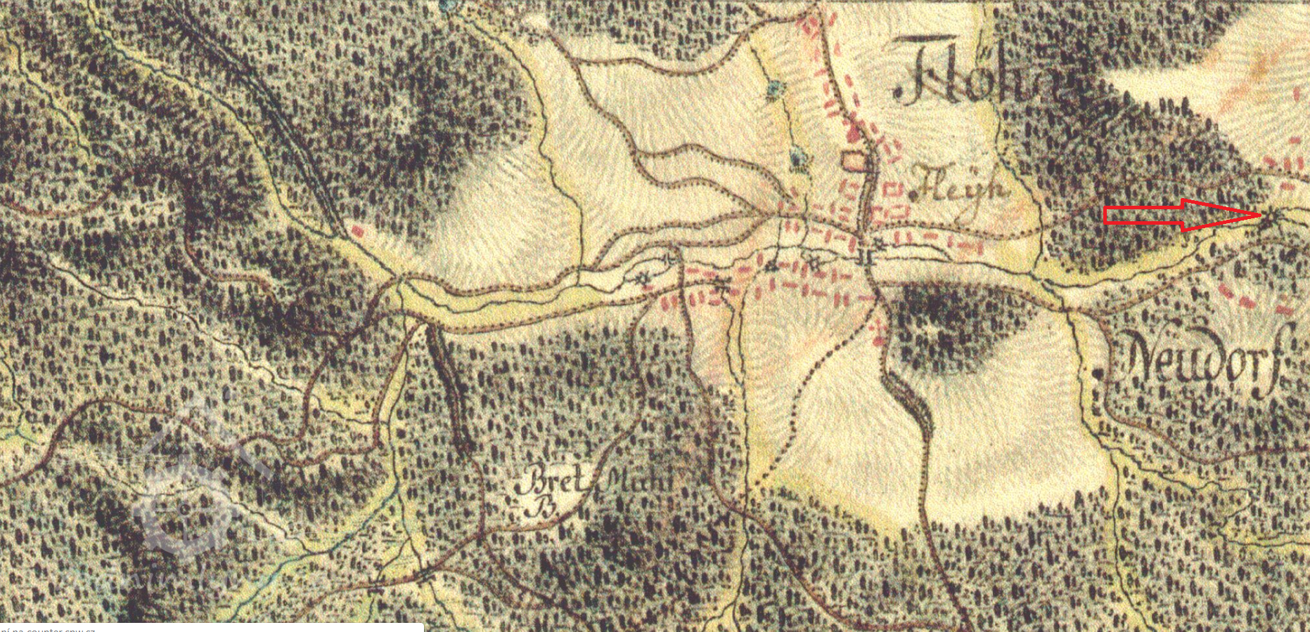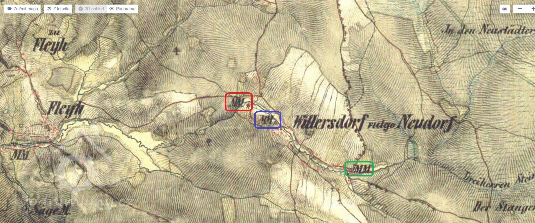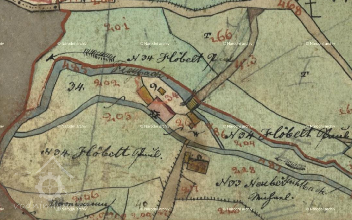 Zaniklý mlýn na západním okraji zaniklé obce Vilejšova (Nové Vsi).