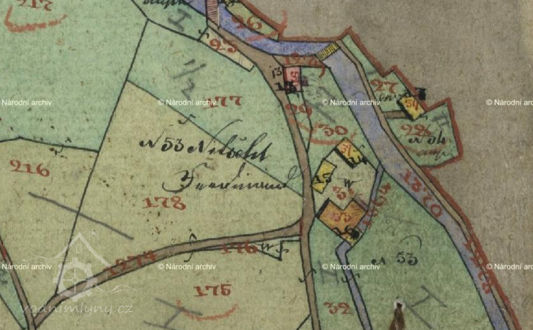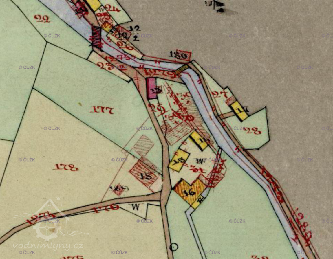 Popis1930: 1 turbína Francis, hltnost 0,36 m3/s, spád 4,1 m, výkon 15,3 HP