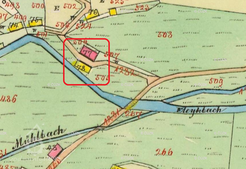 Menší mlýn vzniklý patrně až koncem 19. stol. přestavbou z malé zemědělské usedlosti a po padesáti letech zaniklý.