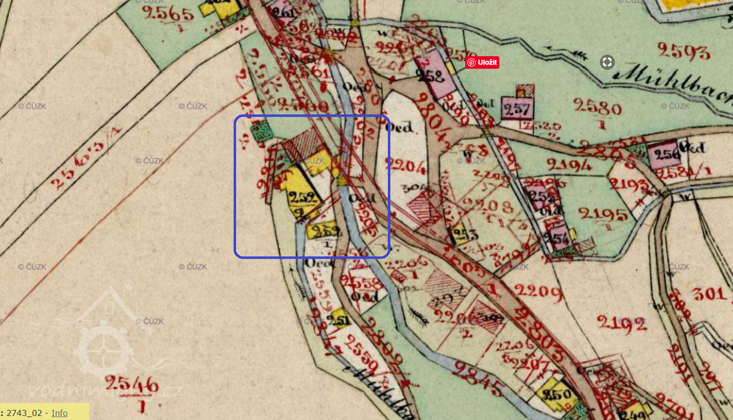 Popis1930: 1 kolo na svrchní vodu, hltnost 0,152 m3/s, spád 4,05 m, výkon 5,2 HP