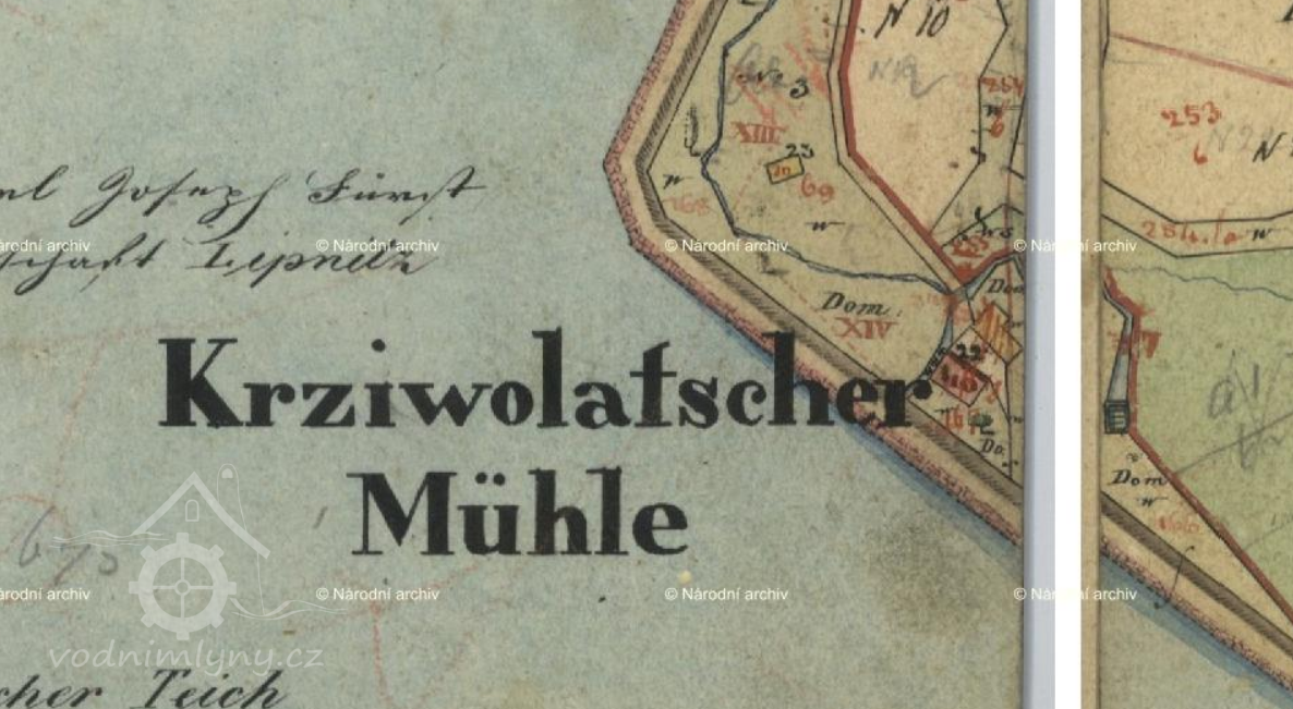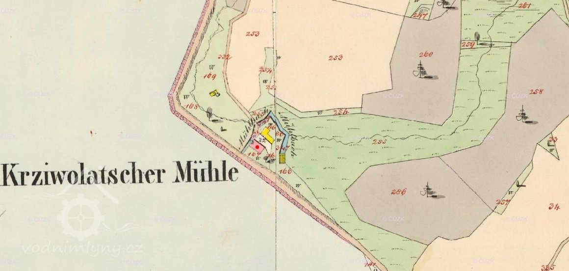 Na leteckém snímku z roku 1949 ještě není mlýniště zatopeno, ale mlýn jž není patrný.