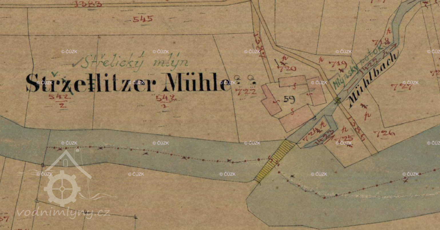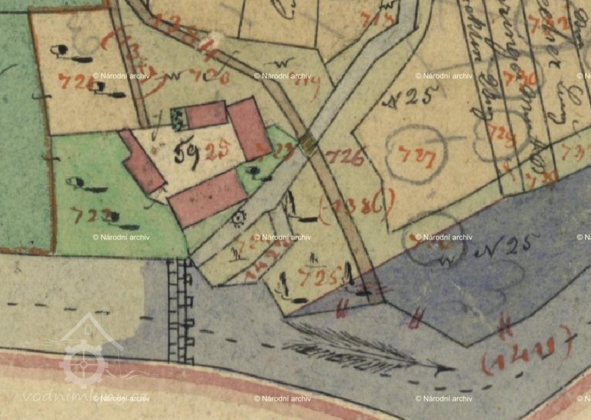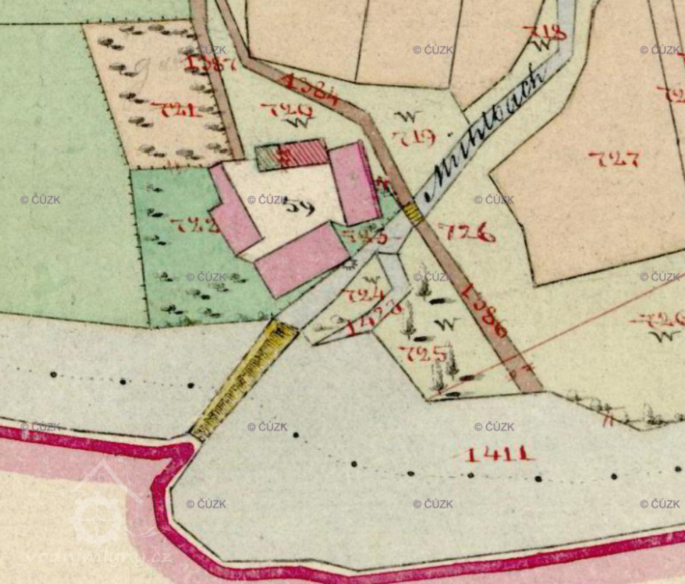 Dnes zaniklá samostatná pila ležela 100 m sv od mlýna na náhonu.