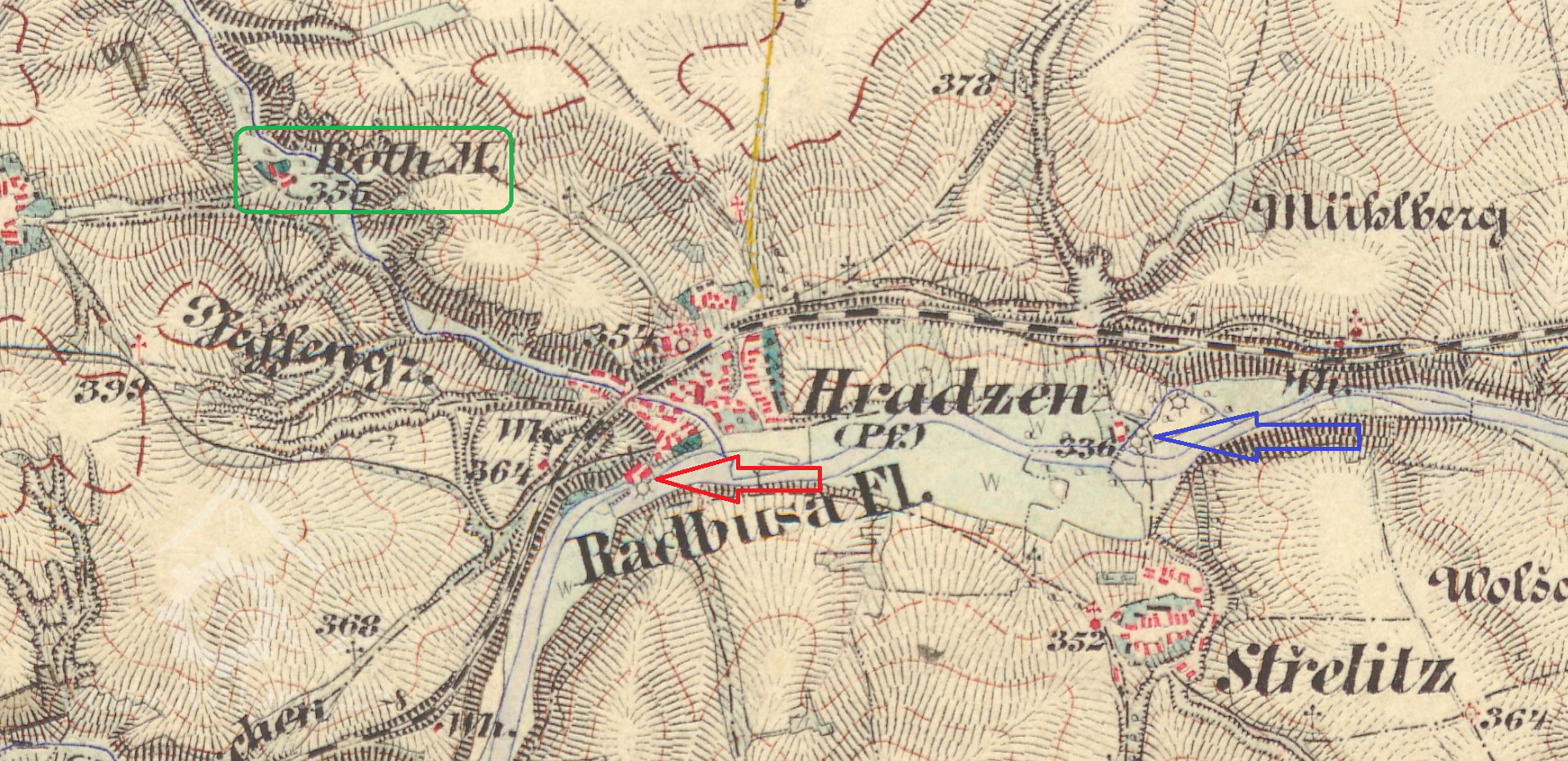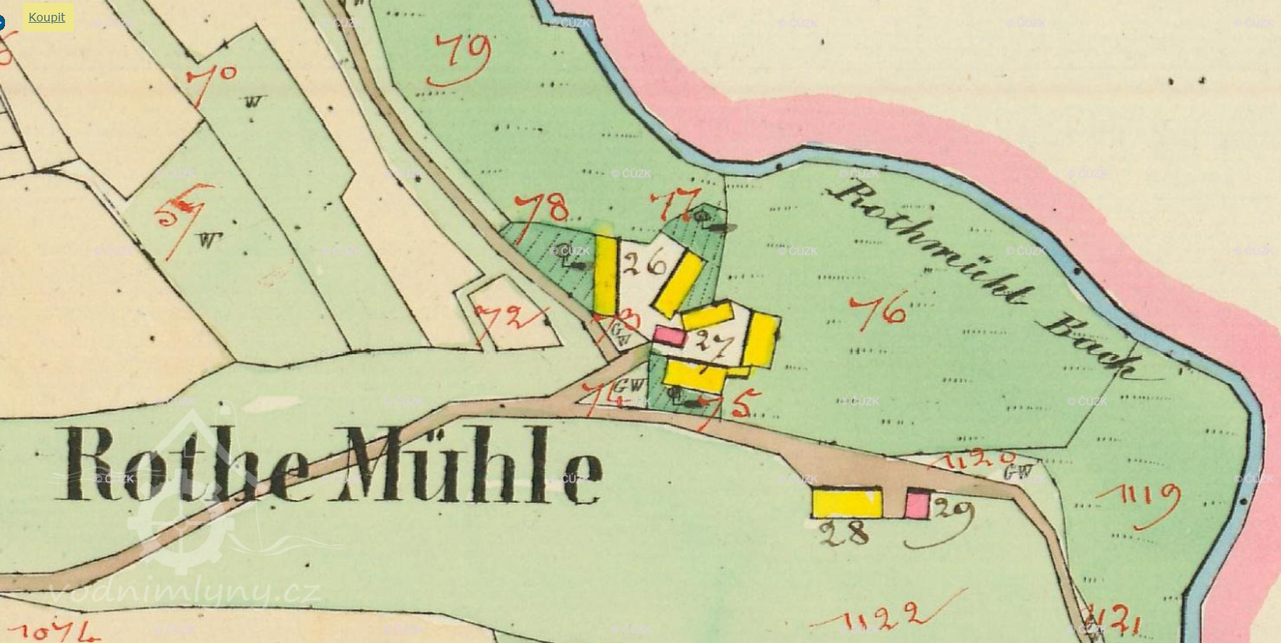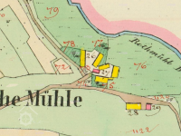 Na katastrální mapě z roku 1838 není zakreslen žádný přítok vody ke mlýnu.