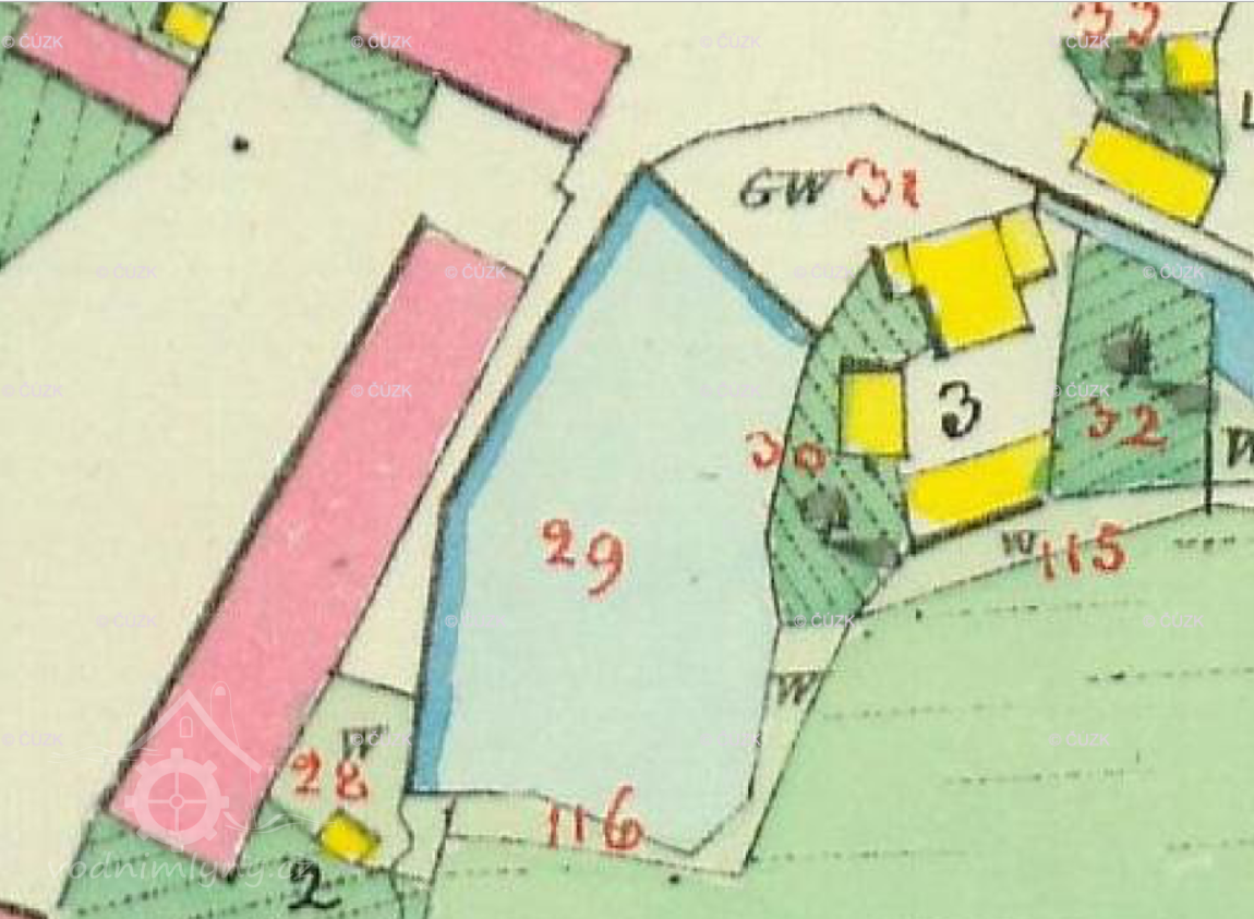 Menší rybník nad mlýnem dnes vypuštěn a zrušen
