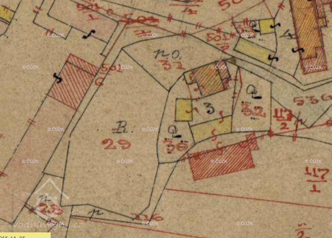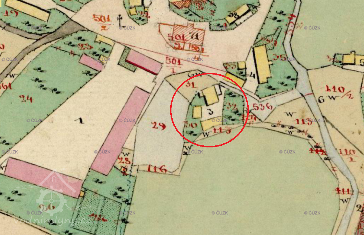 Popis1930: 1 kolo na svrchní vodu, hltnost 0,06 m3/s, spád 6,8 m, výkon 4 HP