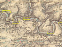 Rozlehlý mlýnský areál na samotě u řeky jižně od obce, poč. 20. stol. redukovaný pouze na pilu, 1964 zatopený Hracholuskou přehradou.