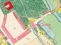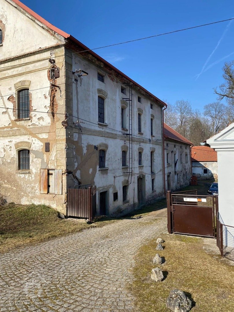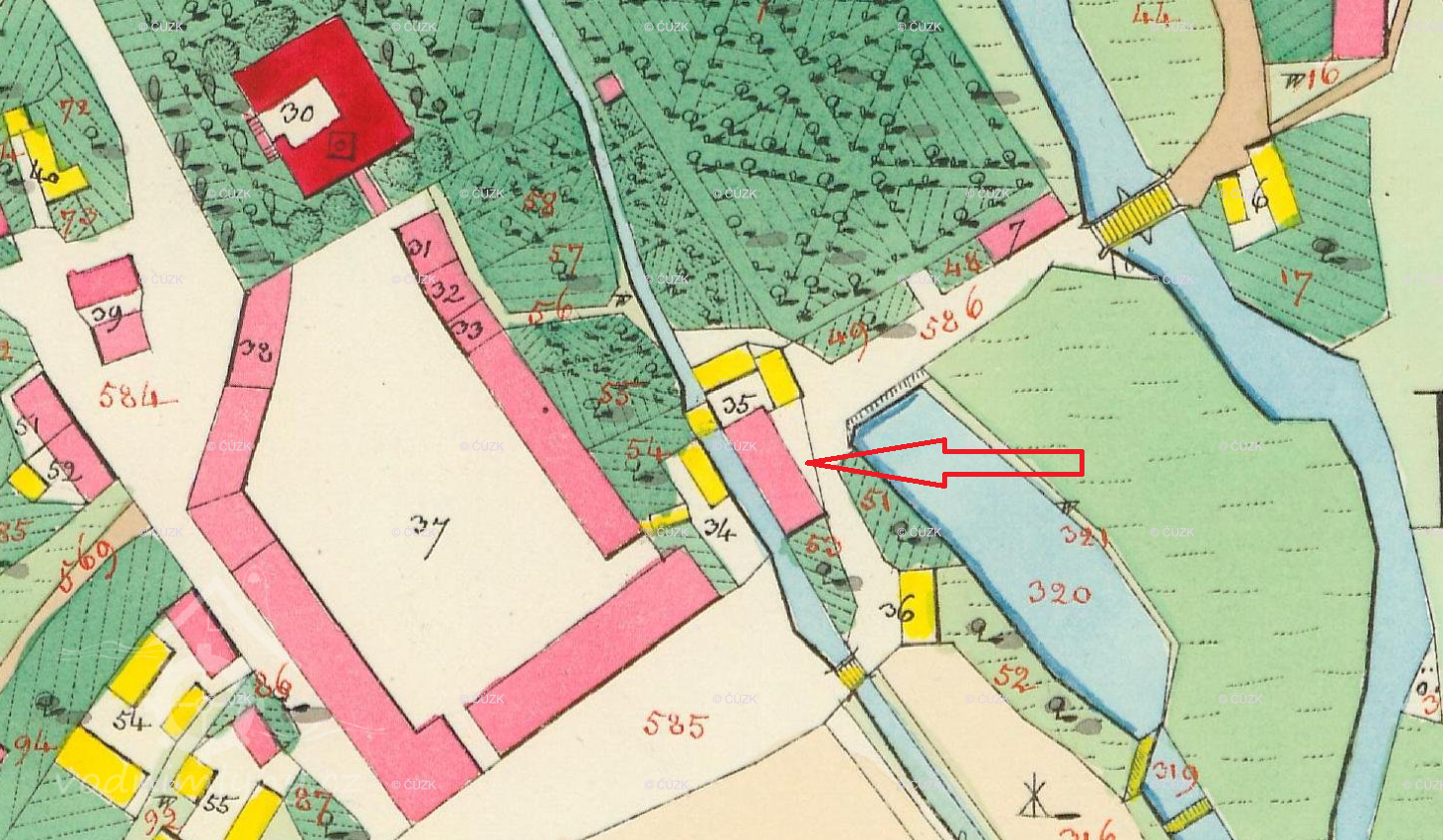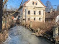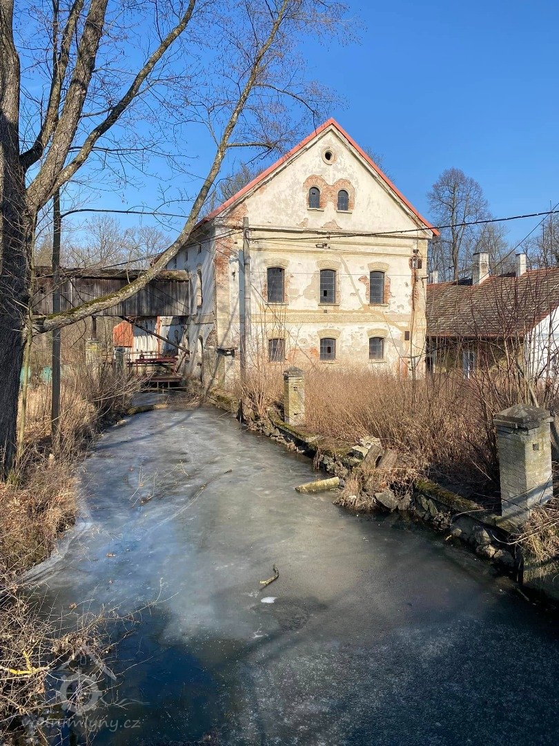 Mlýn čp. 25, v sousedství hospodářského dvora čp. 2 a zámeckého parku.