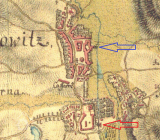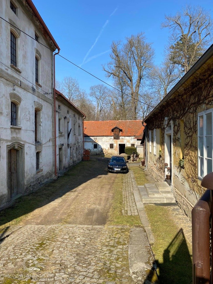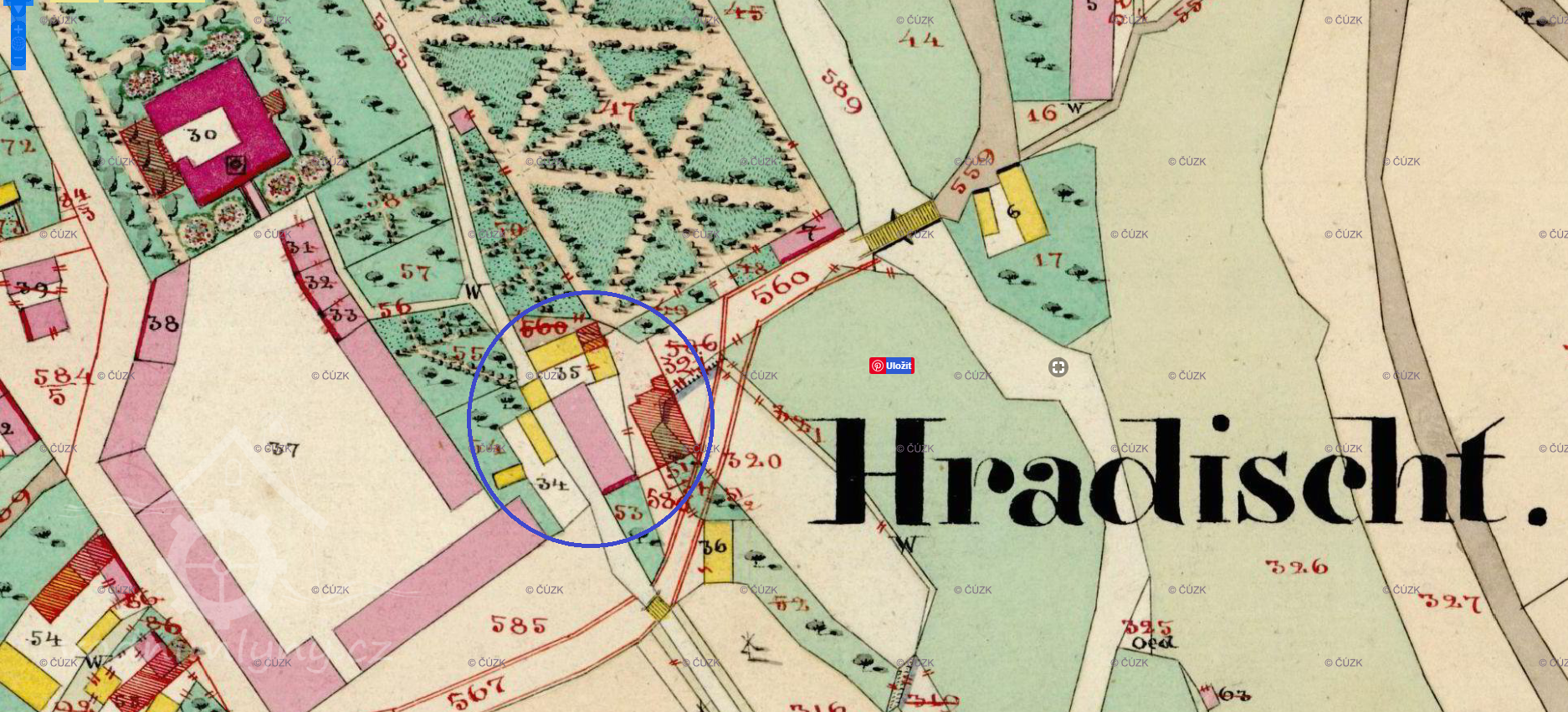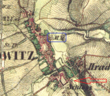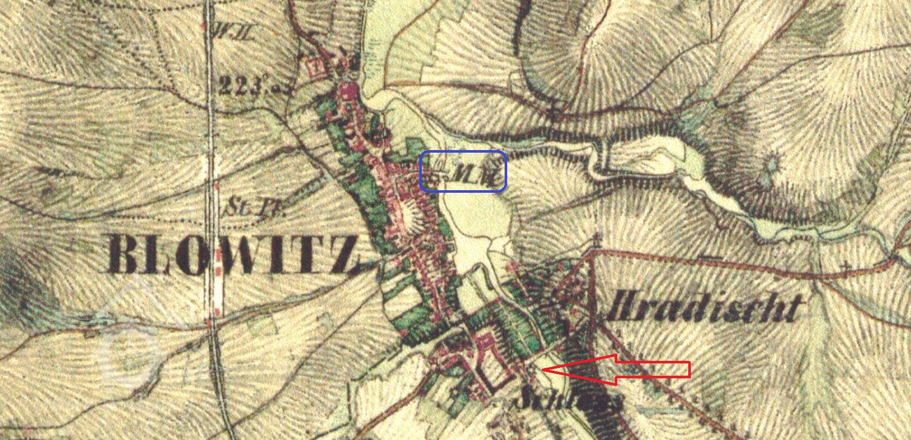 Mlýn čp. 25, v sousedství hospodářského dvora čp. 2 a zámeckého parku.