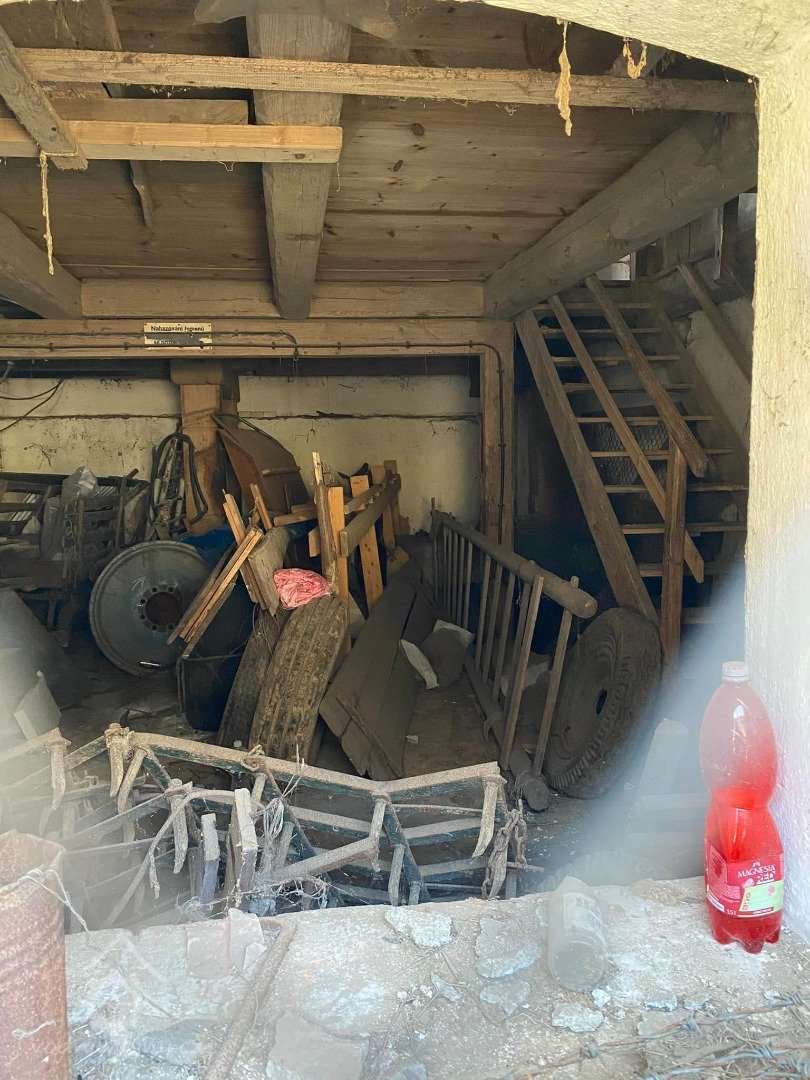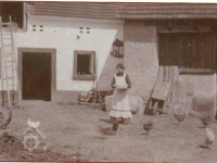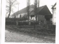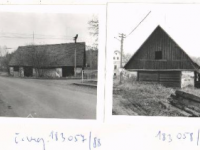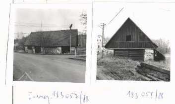 Chlévy vzadu napříč parcely: volně stojící zděné omítané obdélné přizemní stavení o 1 x 7 osách, střecha polovalbová, kdytá bobrovkami, v ní nad 3. a 6. osou vikýř s dřevěnými prkennými dveřmi. Proti dvorku 1., 2., 4., 5. a 7. ose přibližně čtvercová okénka v kamenných ostěních, poslední dvě s podokenní římsou, 3. a 6. osa obdélné dveře. Dvorek k silnici uzavřen novými železnými vraty s širokou brankou pro pěší. Před průčelím obytného stavení zahrádka s drátěným pletivovým plotem.