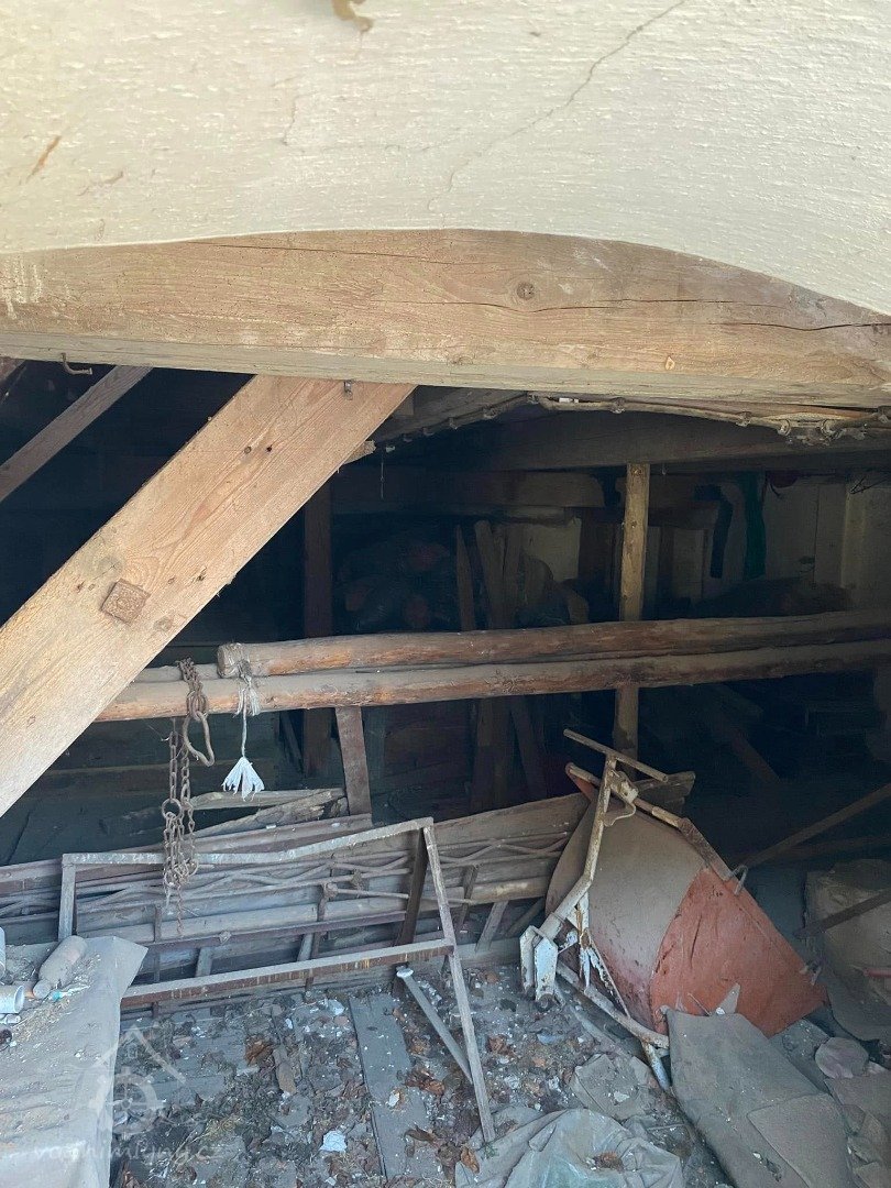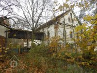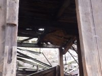 Dveře dvoukřídlé, výplňové. Štít k silnici v orámování se 2 menšími obdélnými šestitabulkovými okny, po stranách každého po liseně /celkem 4/, na nichž spočívá přímá římsa. Ve vrcholu štítu kruhový otvor. Vnitřek plochostropý, vzhledem k vstupnímu průčelí pravidelně dělený dvoutrakt s vzájemně propojenými místnostmi. Ze vstupní síně vpravo dřevěné schody na půdu.