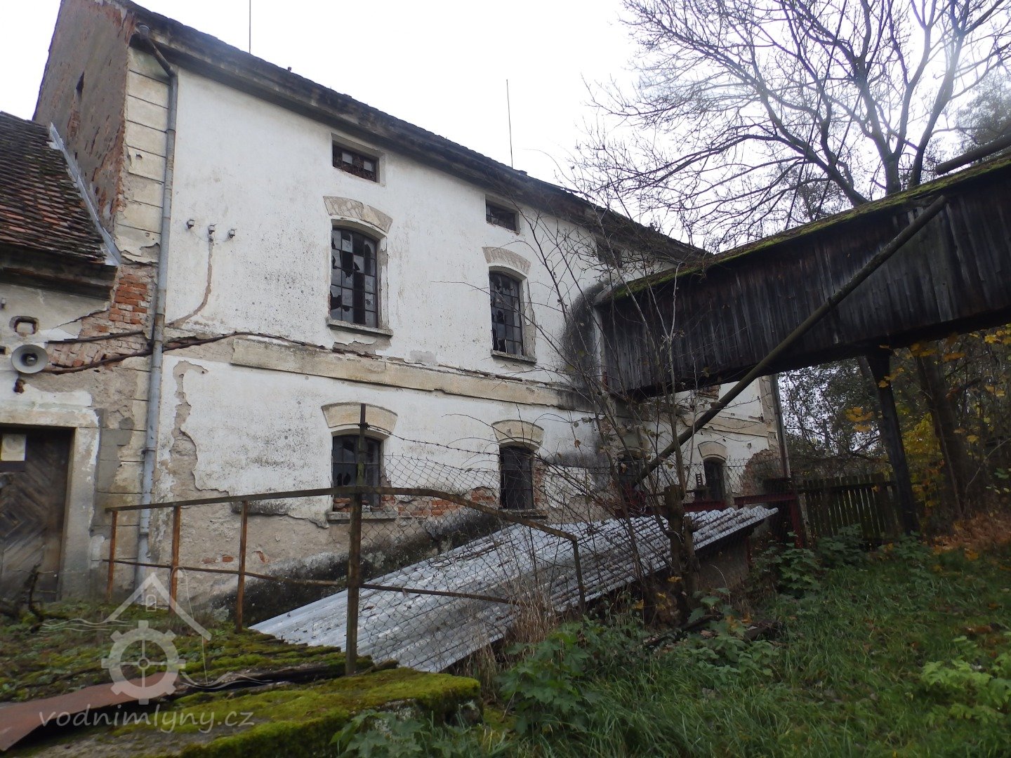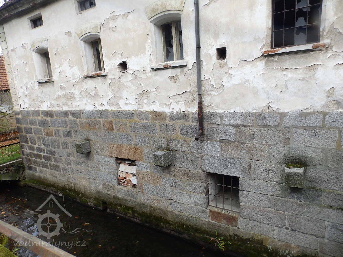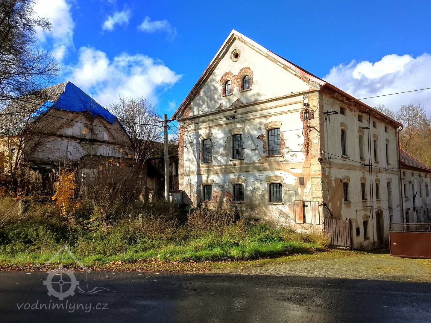 Mlýn tvoří dvoudílné zděné omítané stavení, obrácené kolmo k silnici. Přední část k silnici dvoupatrová s polopatrem o 3 x 4 osách, zadní část, přímo navazující na přední, jepatrová s polopatrem, o 2 x 4 osách. Střechy sedlové, kryté bobrovkami. Přední část dělena při nárožích rustikovanými lisenami, nad l.p. plochou kordonovou v podstřeší hlavní římsou. Trojúhelný štít rámovaný. Okna v přízemí /k silnici nejsou vůbec/ a v 1.p. nižší než ve 2.p., všechna obdélná se segmentovým záklenkem ve špaletě a s podokenní římsou a mírně plasticky vyznačeným záklenkem /výseč mezikruží/, polopatro /k silnici obdélný rámec pro někdejší fiřmu/ má obdélná ležatá neorámovaná okénka. Ve štítě 2 obdélná, půlkruhově zakončená okna s podokenní římsou a záklenkem a nad nimi kruhový otvor. V přízemí do dvorka 1. osa od leva obdélné dveře, 3. osa kamenný profilovaný portálek se středem nadpraží stlačeně zvednutým a s hlavním klenákem. Dveře dvoukřídlé, každé křídlo skládané z prkének do kosočtverce. Uvnitř dřevěné, rozdělené na podlaží podle polohy oken. Zadní část členěna obdobně /tvary oken v přízemí a 1.patře i v polopatře, liseny při nároží, kordonová římsa není, štítová stěna hladká, v ní v přízemí pravoúhlý portálek a jedno okénko, v 1.p. okna jako v průčelí, ve štítě 2 obdélná okna. Vstupní portálek ze dvorku /v 1. ose této části/ kamenný, obdélný, s ušima a rámovací lištou a s hlavním klenákem, v němž vyryta přes sebe psací písmena, snad FAC a po stranách klenáku letopočet A 18/14. Jednokřídlé dveře z prkének v rámu, skládaných do čtverce, stojícího na jednom vrcholu. Uvnitř podobné dělení jako v přední části. Přední část ve výši 2.p. spojena podepřenou, svisle z prken obedněnou chodbou s eternitovou sedlovou střechou s výše, ve svahu při štítové stěně stodol hospodářského dvora stojícím obdélným stavením s kamennými ostěními ležatých špýcharových okének a s bedněným polopatrem a štítem sedlové střechy, kryté bobrovkami.
