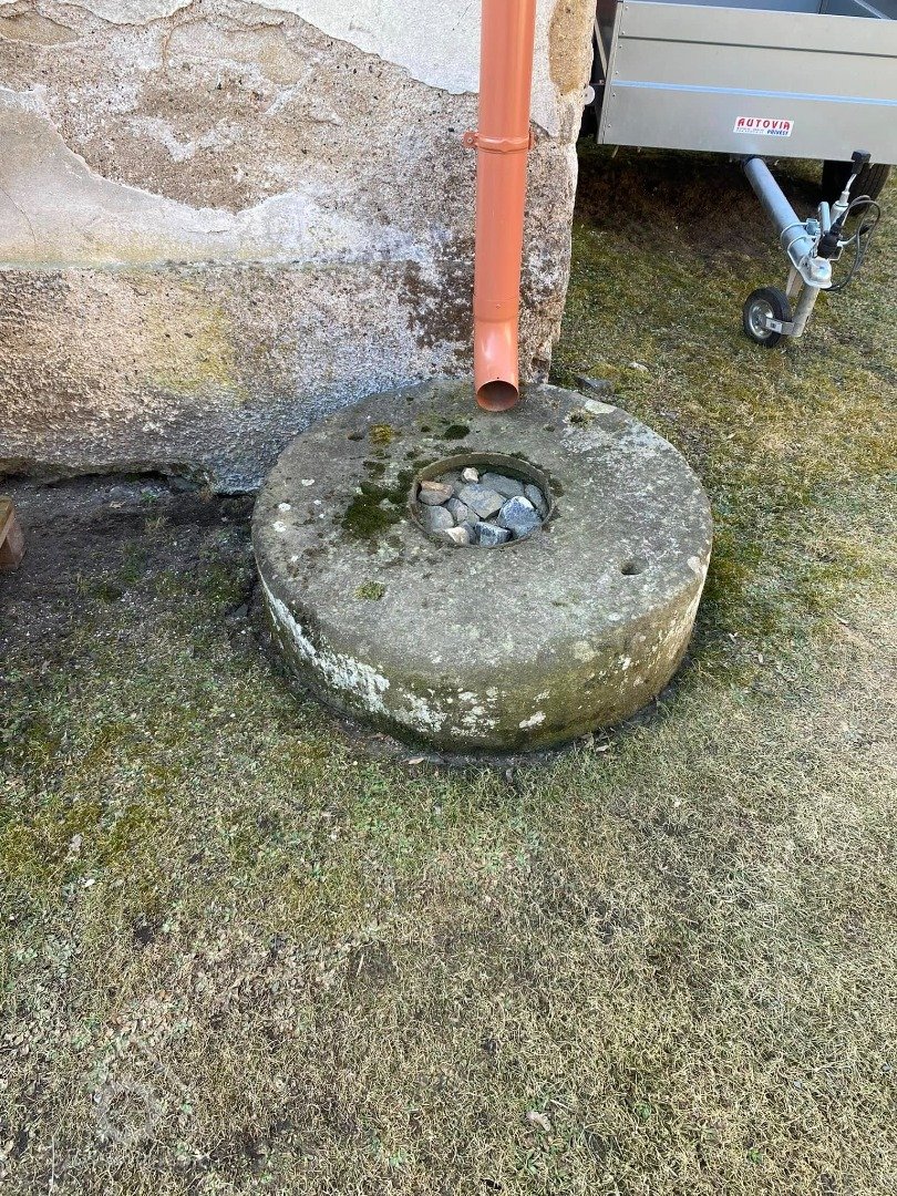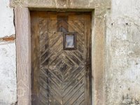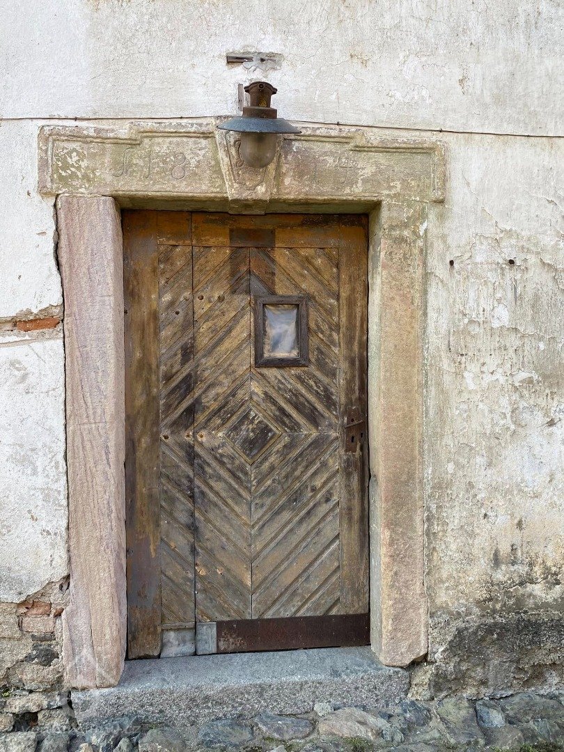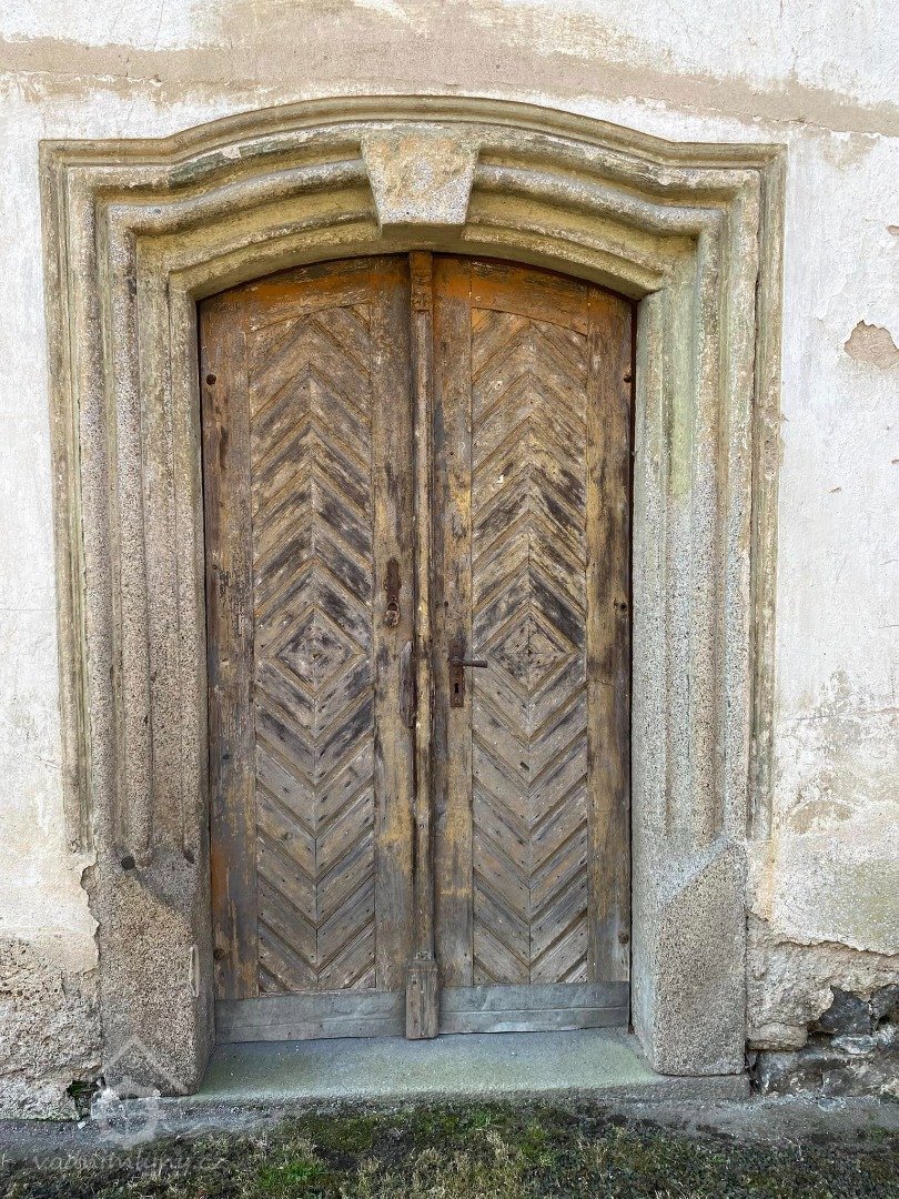 Vstupní portál kamennýma podélným nadpražnlm světlíkem, profilace v okosení výžlabek.