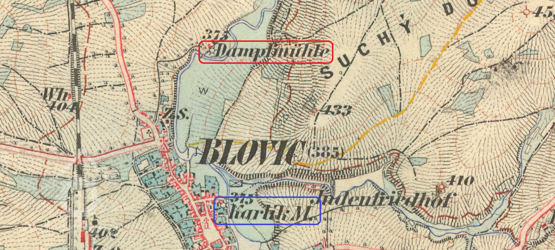 1877-1880, 1896 na mapě III. voj. mapování a v dokumentech označen jako parní