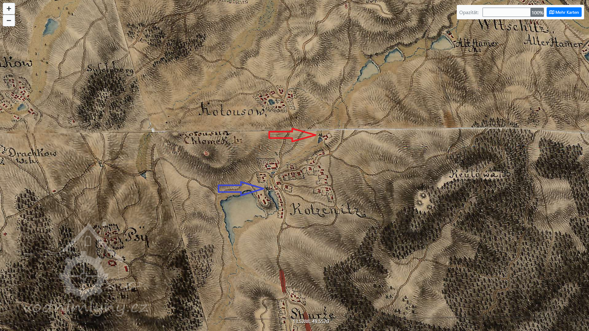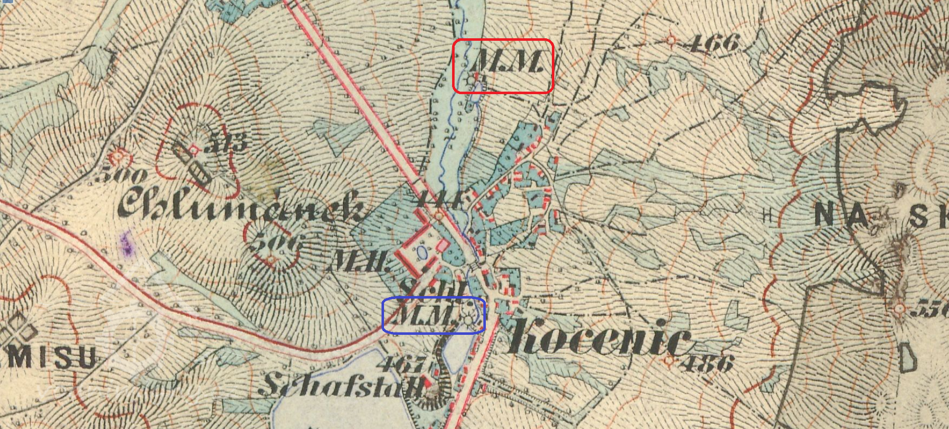 1764 v Chocenicích dva mlýny - Horní a Dolní