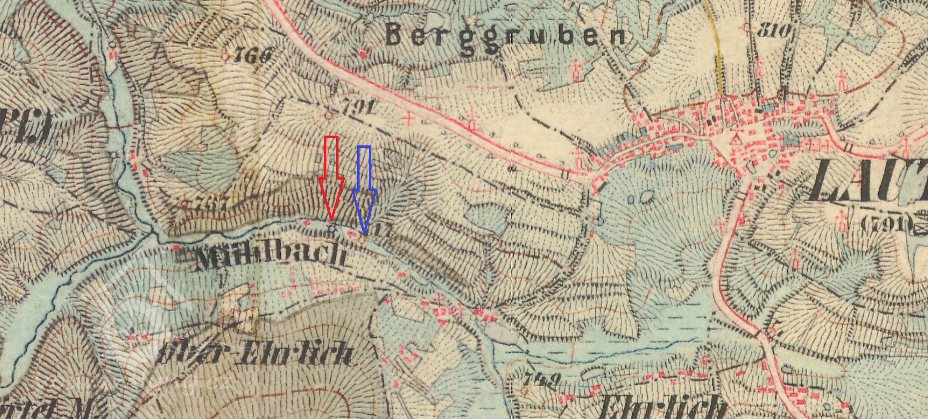 1525 jedna z 8 drtíren lnu na vodní pohon pod Litrbachy