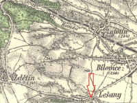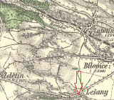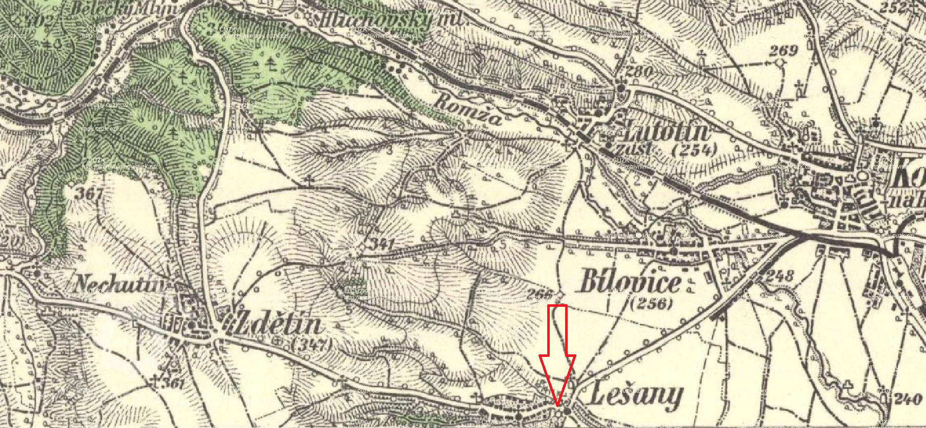 50 m západně od kostela Nejsv. Trojice v Lešanech