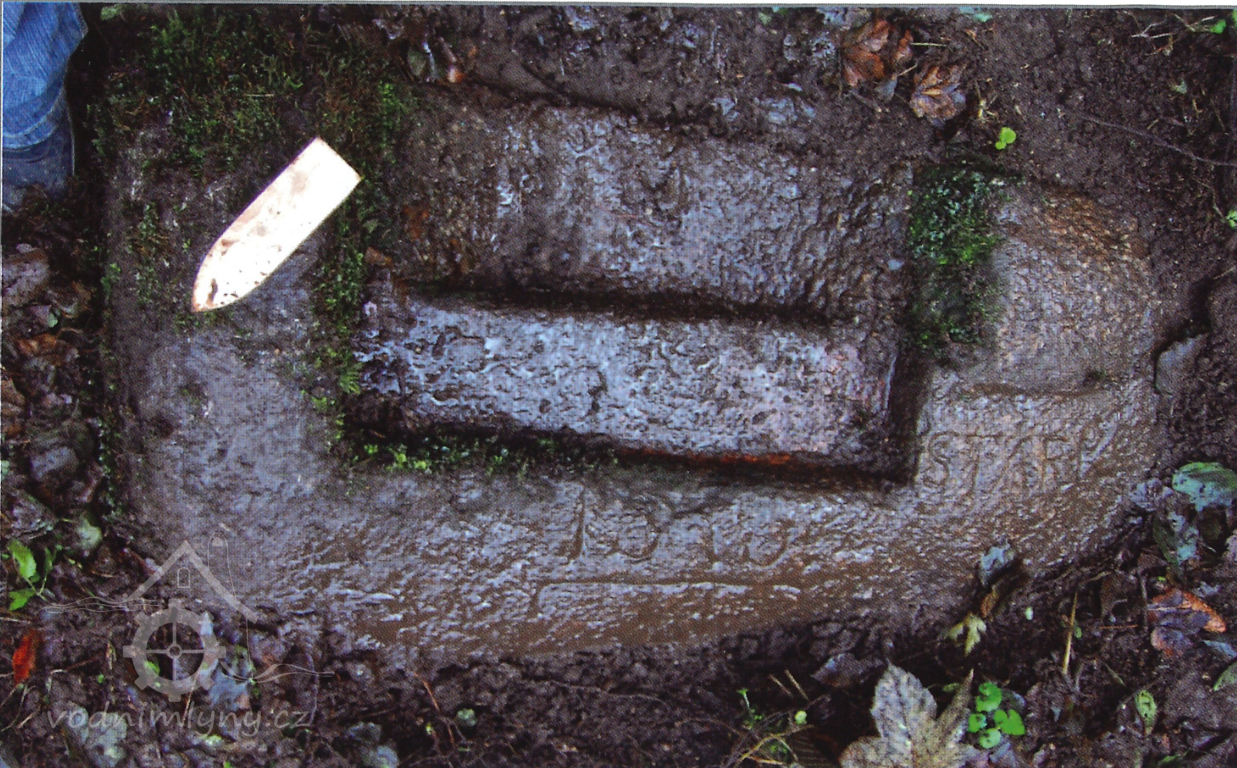 nalezeno kamenné dolní ložisko vodního kola s vyrytým nápisem STARK 1915 , jeho původ není jasný