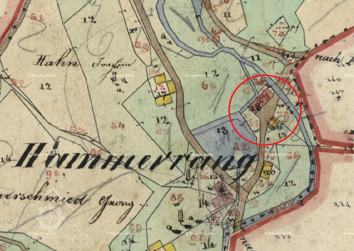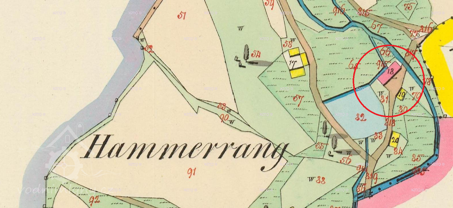 Původní hamr, později přestavěný na pilu, 1930 evidován též jako pila, zanikl po II. světové válce při likvidaci VVT Prameny. Pokud někdy sloužil jako obilní mlýn, pak asi jen pouze příležitostně.