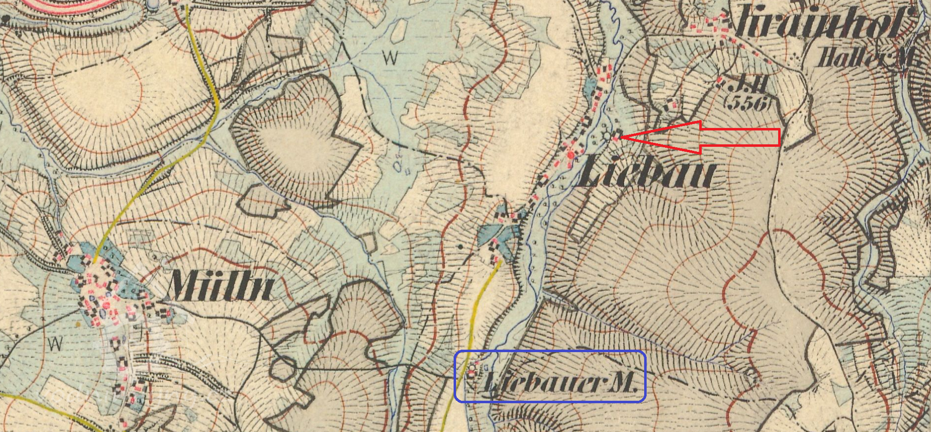Necelé dva kilometry nad obcí Libava se nacházel jeden z mnoha mlýnů zdejší oblasti. Vede k němu velice dlouhý náhon, který zvedal vody potoku do poměrně velké výšky. Protože zdejší sklon krajiny je malý a tudíž tok potoku mírný, musela tomu délka náhonu odpovídat. Když byla voda dopravena do dostatečné výšky, vlévala se do středně velkého vyrovnávacího rybníku.