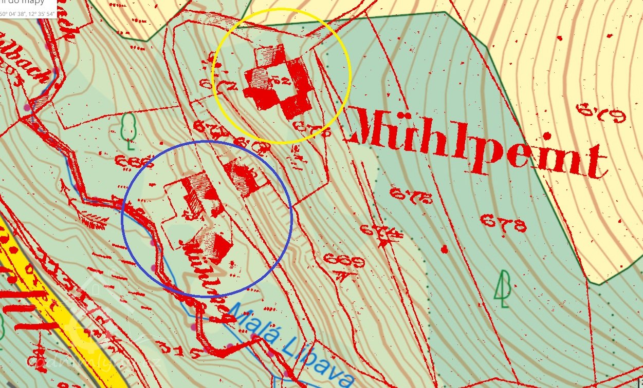 1570 zmínka o mlýnu ve smrkovecké farní maytrice jako Mühlbeunt