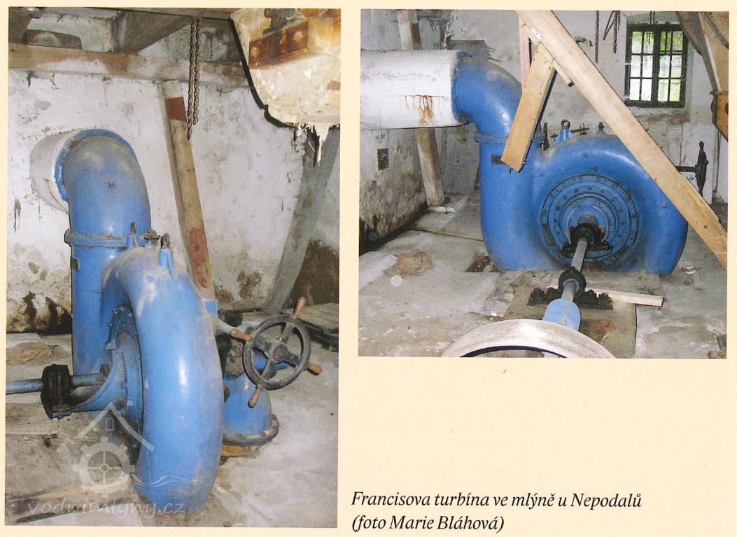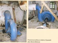 Popis1930: 1 turbína Francis, hltnost 0,35 m/s, spád 3,7 m, výkon 13 HP