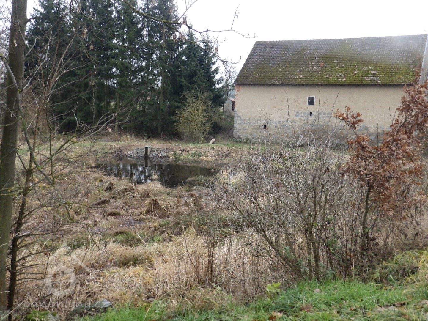 na hrázi rybníka stavidlo, kterým se voda pouštěla náhonem do mlýna, z rybníka voda vedena kanálem se stavidlem, nejprve hluboký pod cestou v délce 5,5 m, dál až do turbíny vedlo potrubí o průměru 55 cm., a to splavem na jihozápadní straně do potoka a splavem na severní straně do jalového potoka.