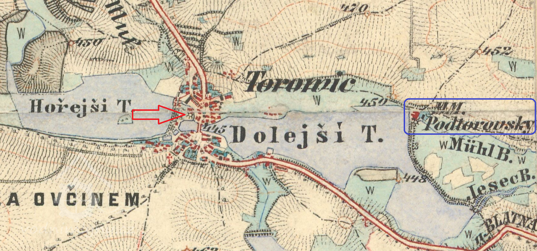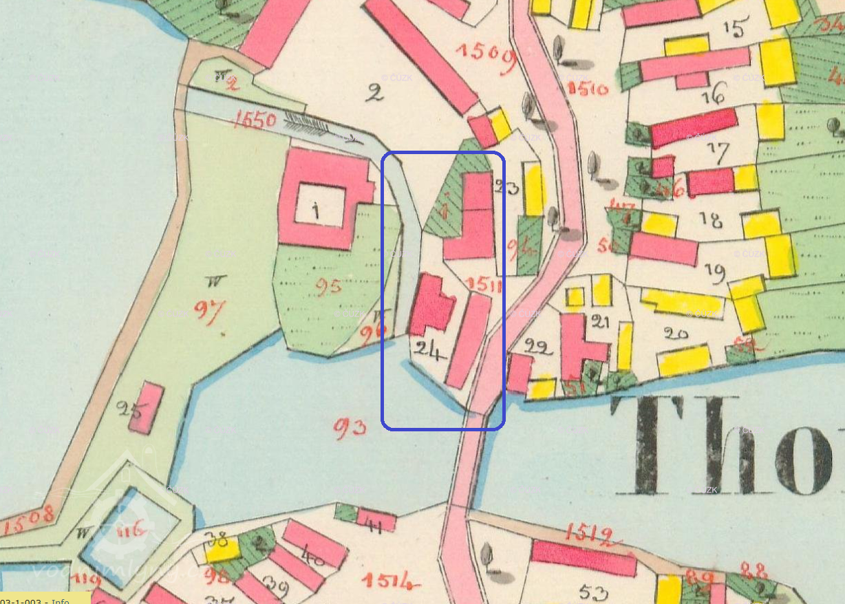 Mlýn pod rybníkem v sousedství tchořovické tvrze, založený v polovině 17. stol., dnes slouží k bydlení.